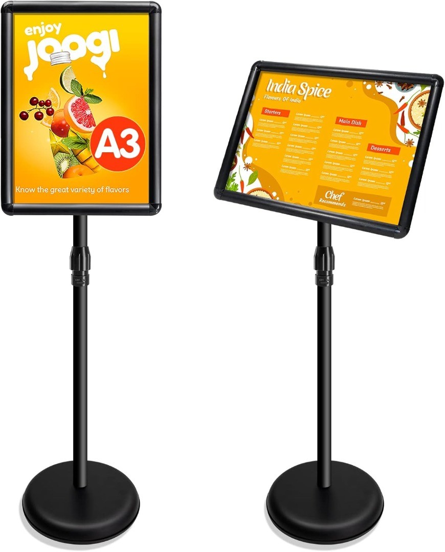 A3 Sign Poster Stand Adjustable Display Stand, Aluminium Snap Frame Menu Floor Stands, Floor Standing Sign Holder for Advertising Business Office Restaurant Cafe Store Market, Black