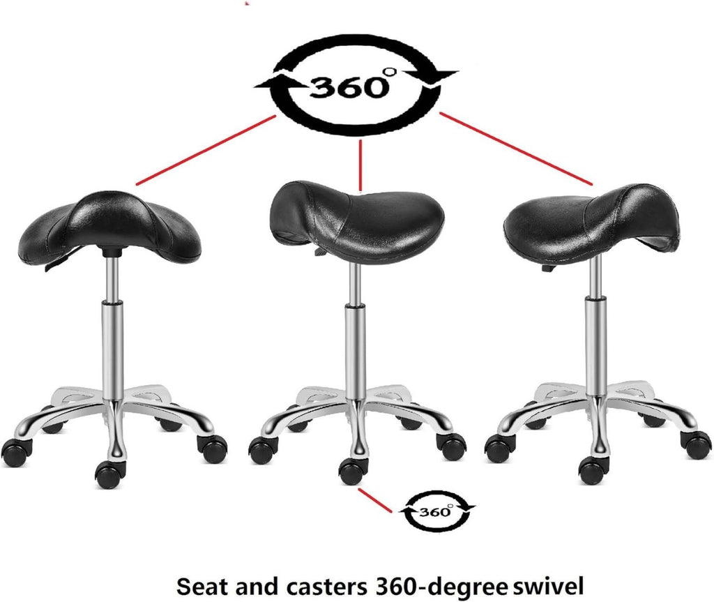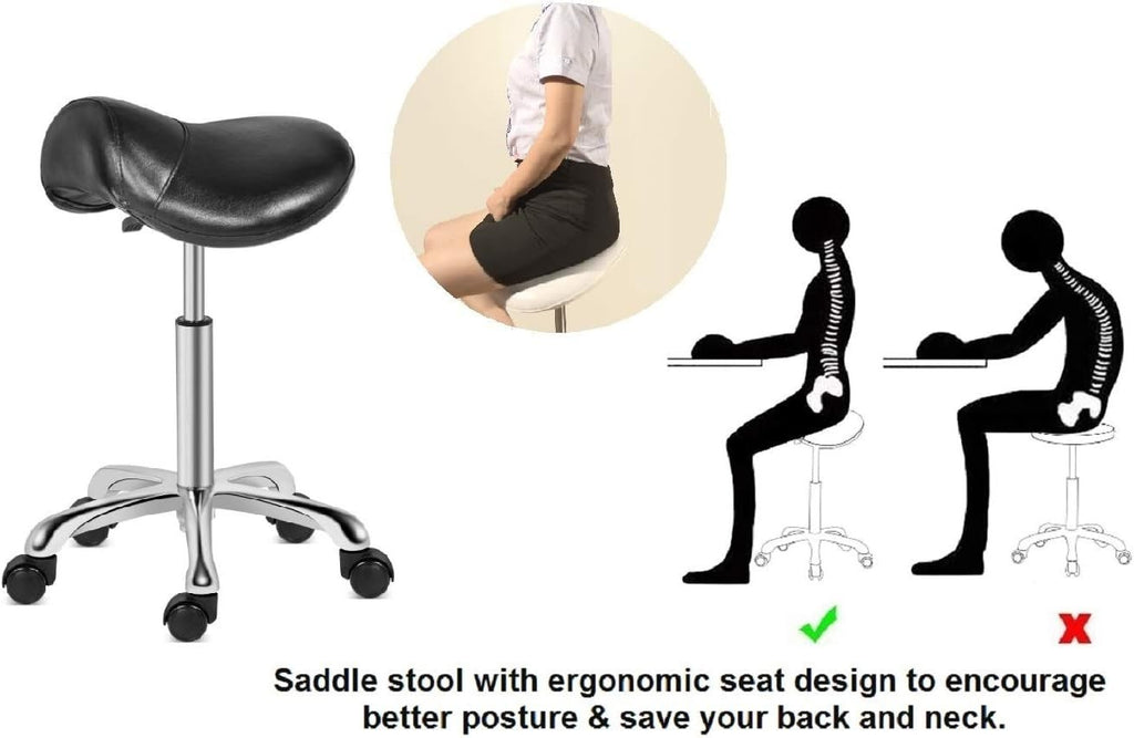 Kaleurrier Saddle Stool Rolling Swivel Height Adjustable with Wheels,Heavy Duty Anti-Fatigue Stools,Ergonomic Stool Chair for Lab Clinic Dentist Salon Office Home (Black, Without Back Support)