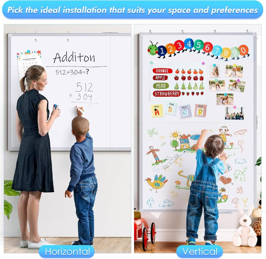 Magnetic Folding Whiteboard Wall Mount Dry Erase 120x90cm