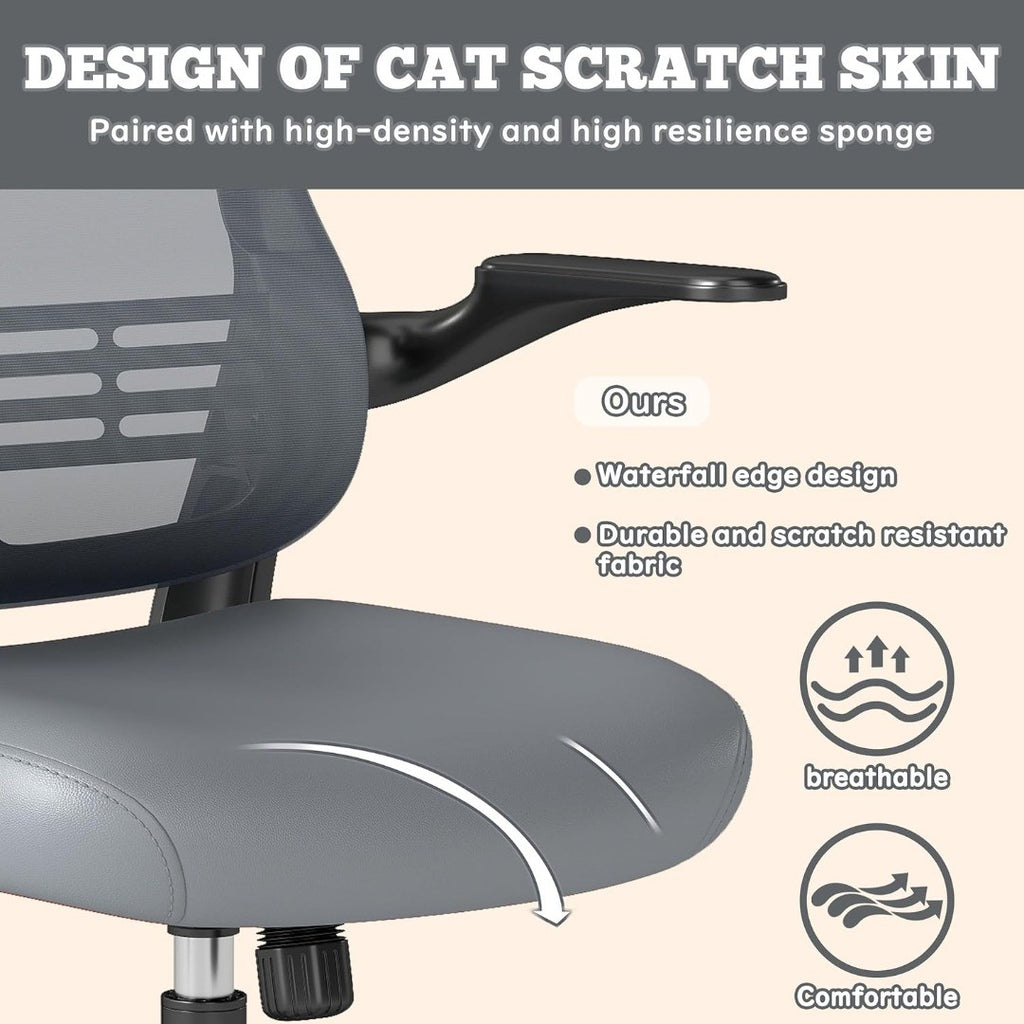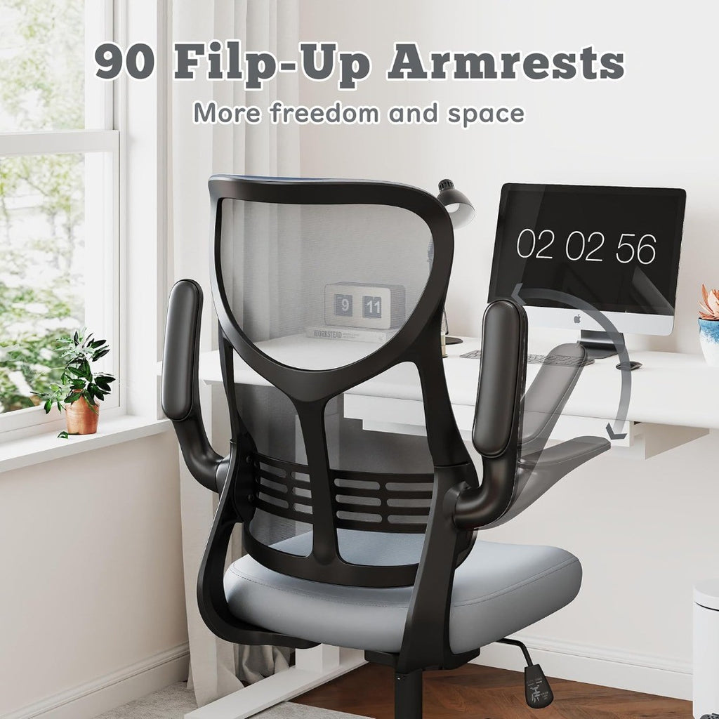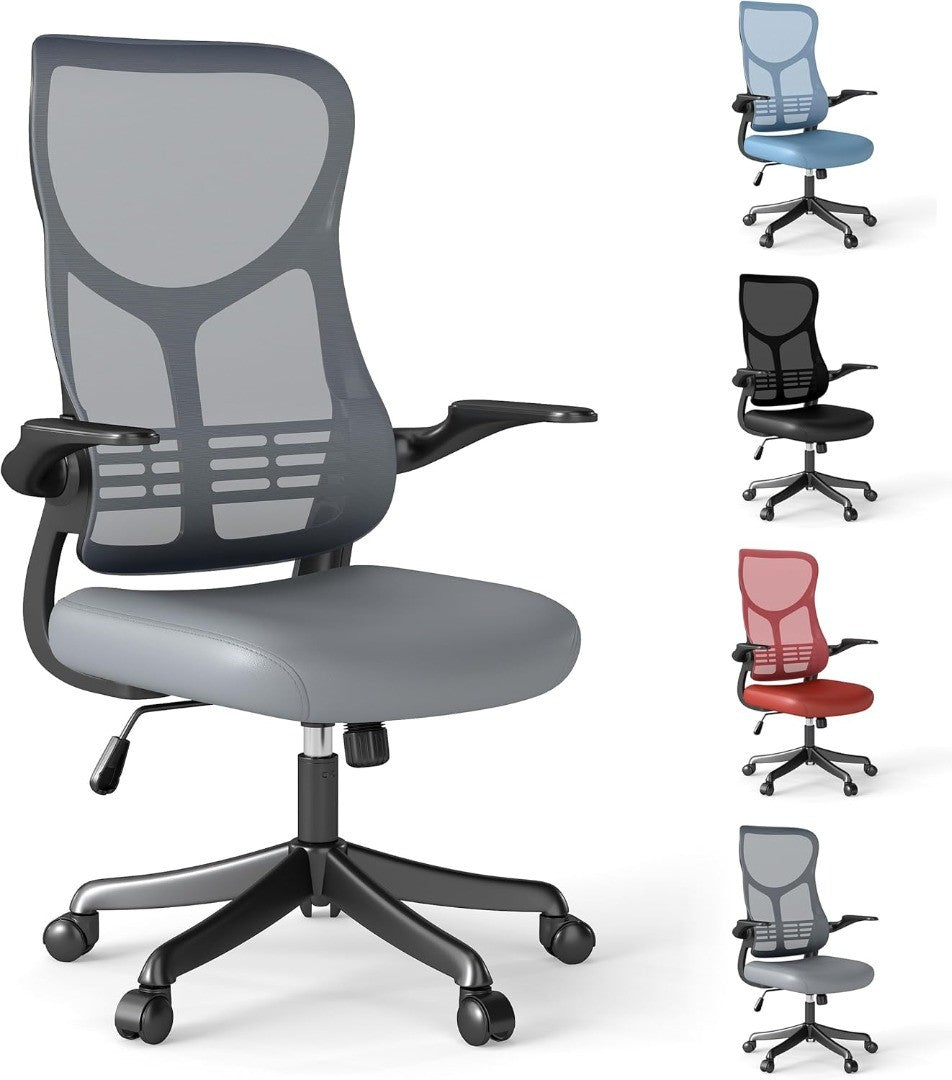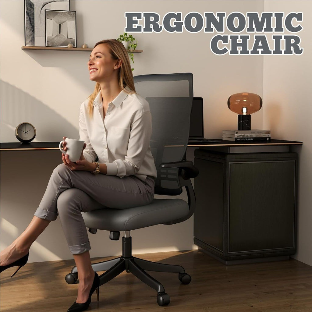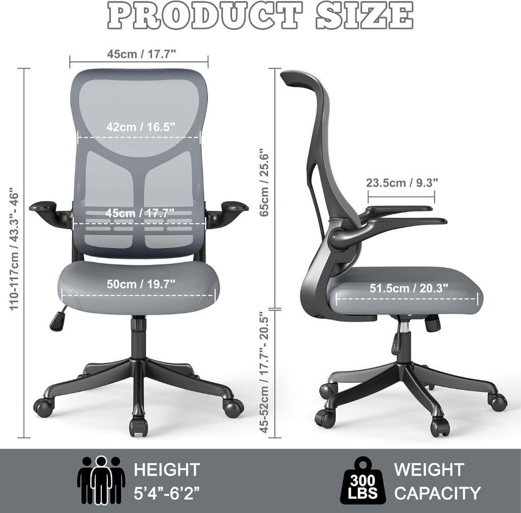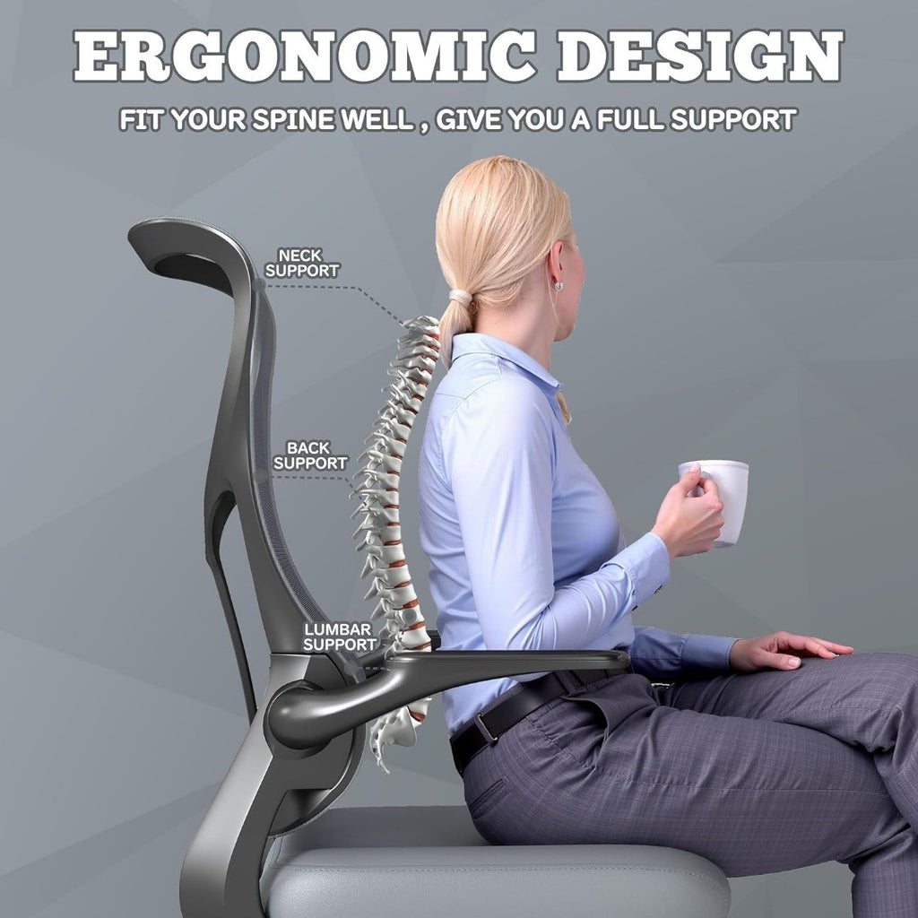 Chair - Adjustable High Back Desk Chair with Lumbar & Neck Support, Flip-Up