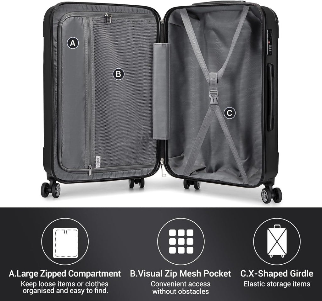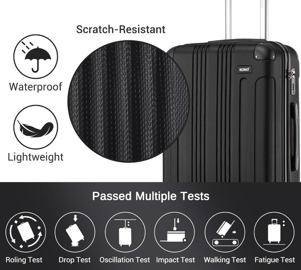 Material: Made of lightweight and durable PC material, which provides long-lasting usage and safety. Scratch-resistant, pressure-resistant and waterproof. Lighter than ordinary ABS luggage, it is more resistant to drops and collisions.