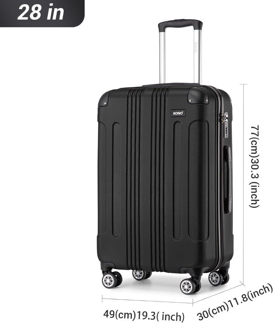 Kono 28 Inch Large Hard Shell Check-In Luggage ABS+PC Lightweight Suitcase with 4 Spinner Wheels Trolley Case (Black)