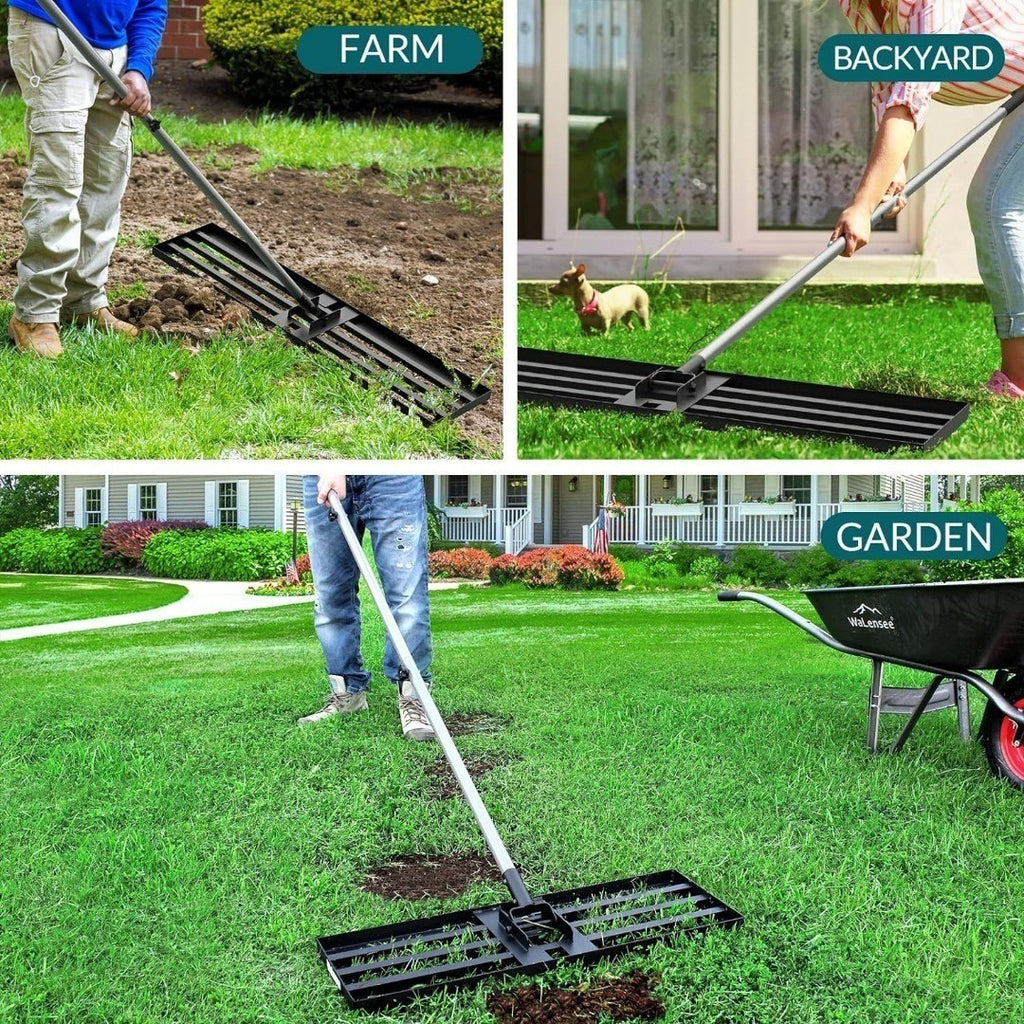 Walensee Lawn Leveling Rake, 213cm 76x25cm Levelawn Tool, Heavy Duty Effort Saving Lawn Level Tool, Stainless Steel Handle Lawn Leveler for Yard Garden Golf Course, Ease Level Soil Sand Dirt Surfaces