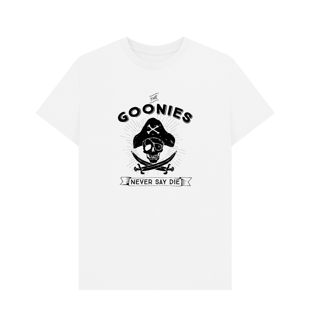 Our OFFICIAL The Goonies 'Never Say Die' Pirate Graphic White T-Shirt based on the popular film features a printed design on the front. This quality garment is manufactured officially under license by Park London on behalf of The Goonies.