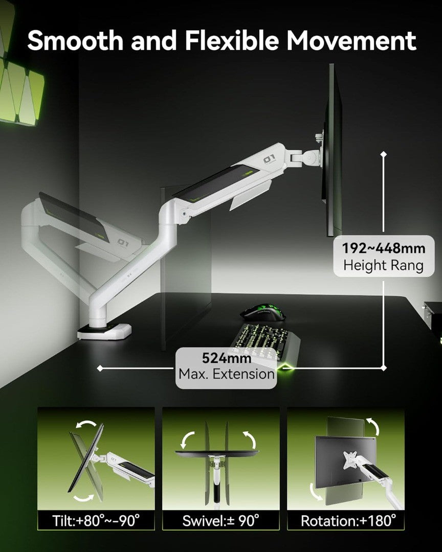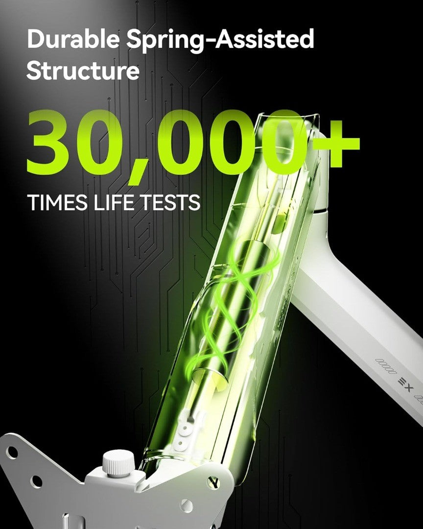 Universal Adjustable Monitor mount – The monitor arm with Mechanical Spring offers a five-axis universal adjustment system, allowing full 360° rotation and precise positioning to ensure optimal viewing angles, whether you're gaming, working, or streaming.