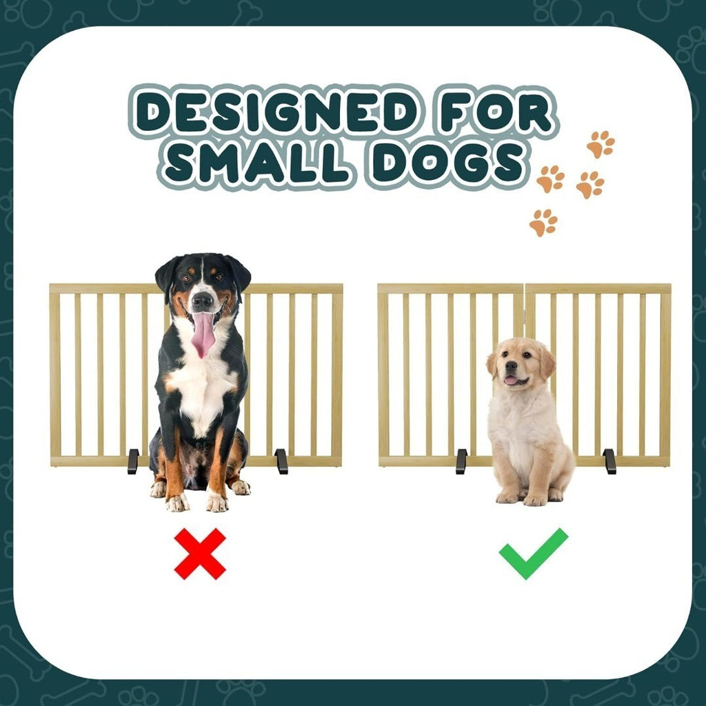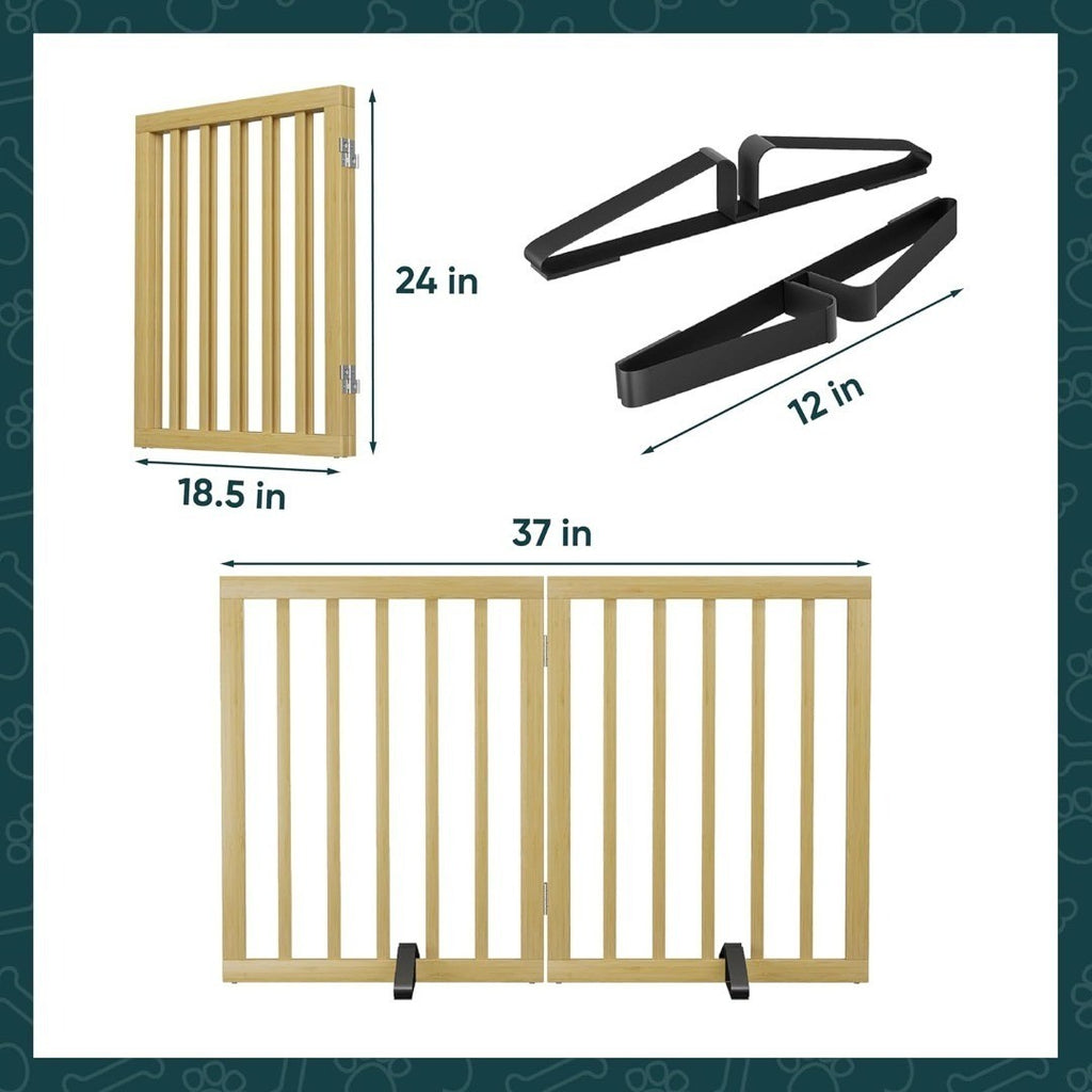 - Freestanding Design: This dog gate is freestanding and requires no installation or mounting. The puppy gate can be easily placed in any desired location, such as doorways, staircases, or hallways, providing a convenient and portable solution for restricting your pet's access.