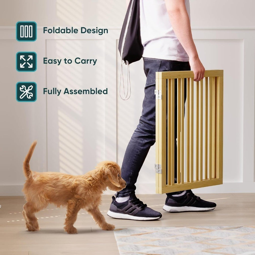 - Multi-functional Use: In addition to being a dog gate, the Bamboo Freestanding Dog Gate can also function as a pet fence or partition. The pet gate helps you confine your pet to a designated area, providing a safe space for them, and can be used for pet training or controlling their range of activities.