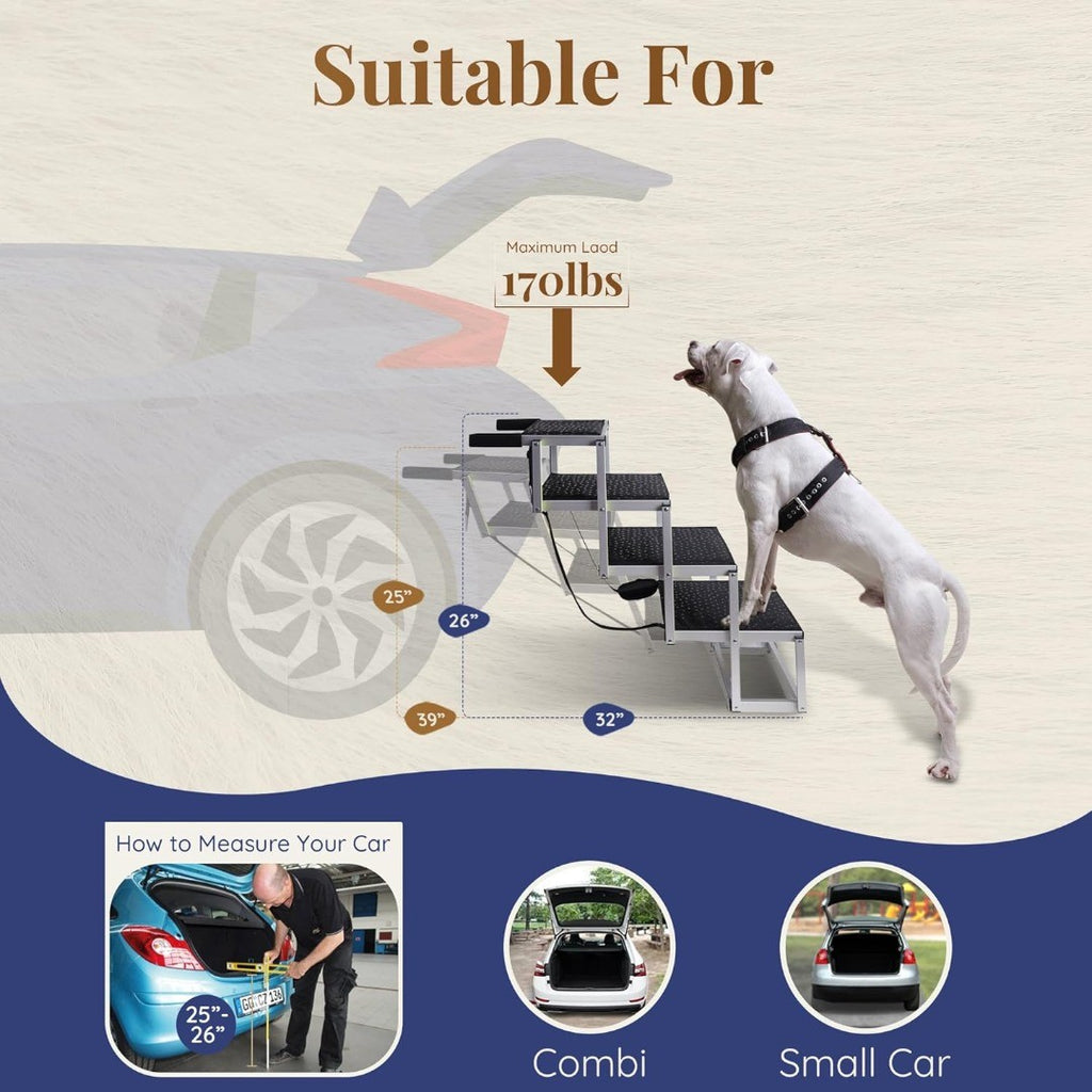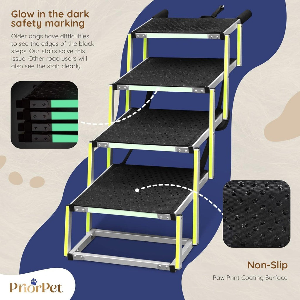 PRIOPET 4-Step Dog Stairs with Glow-In-the-Dark Strip