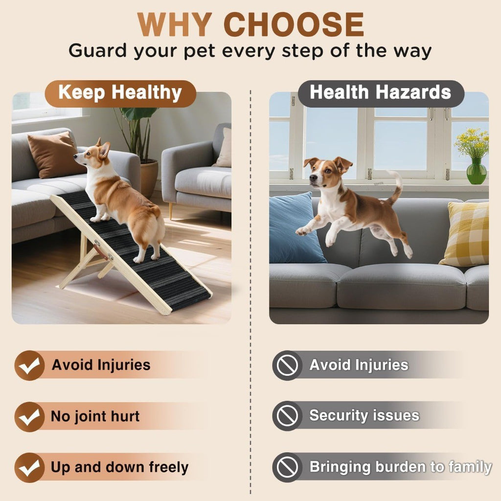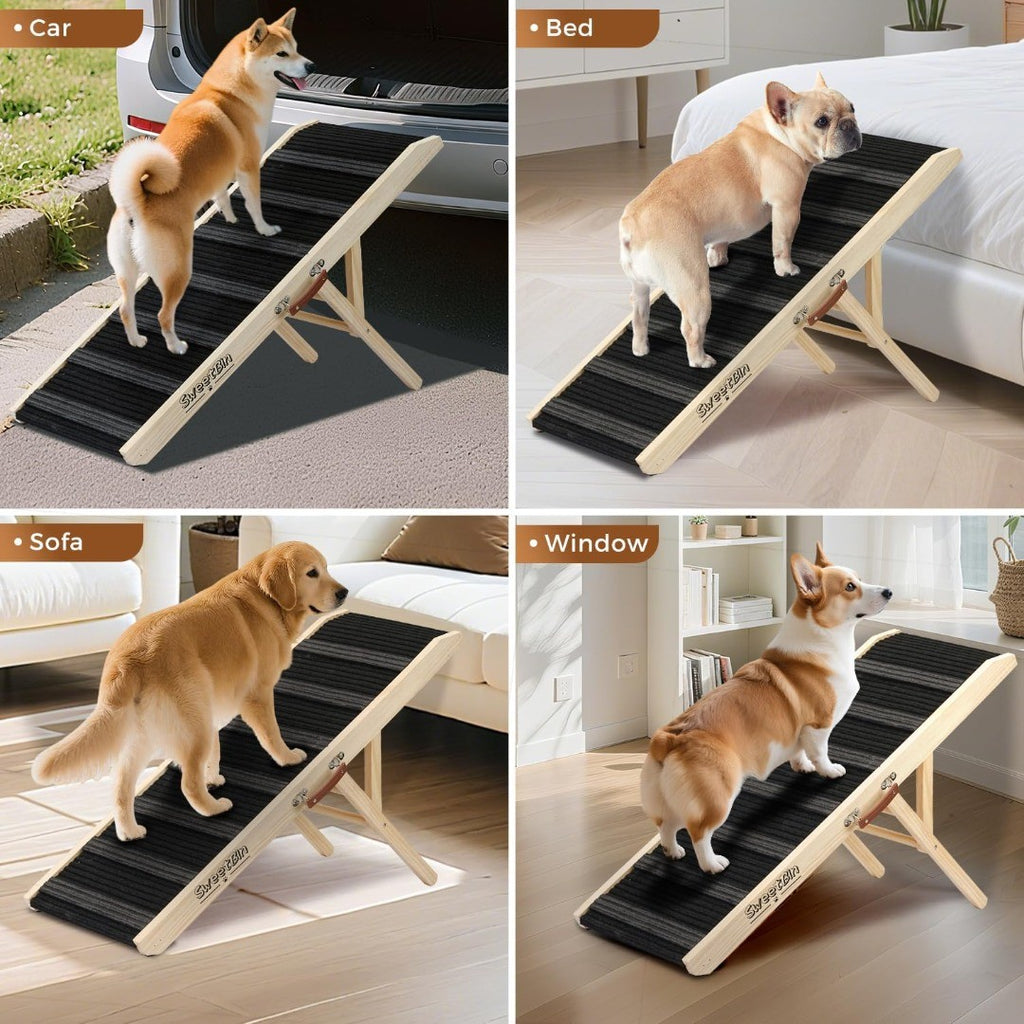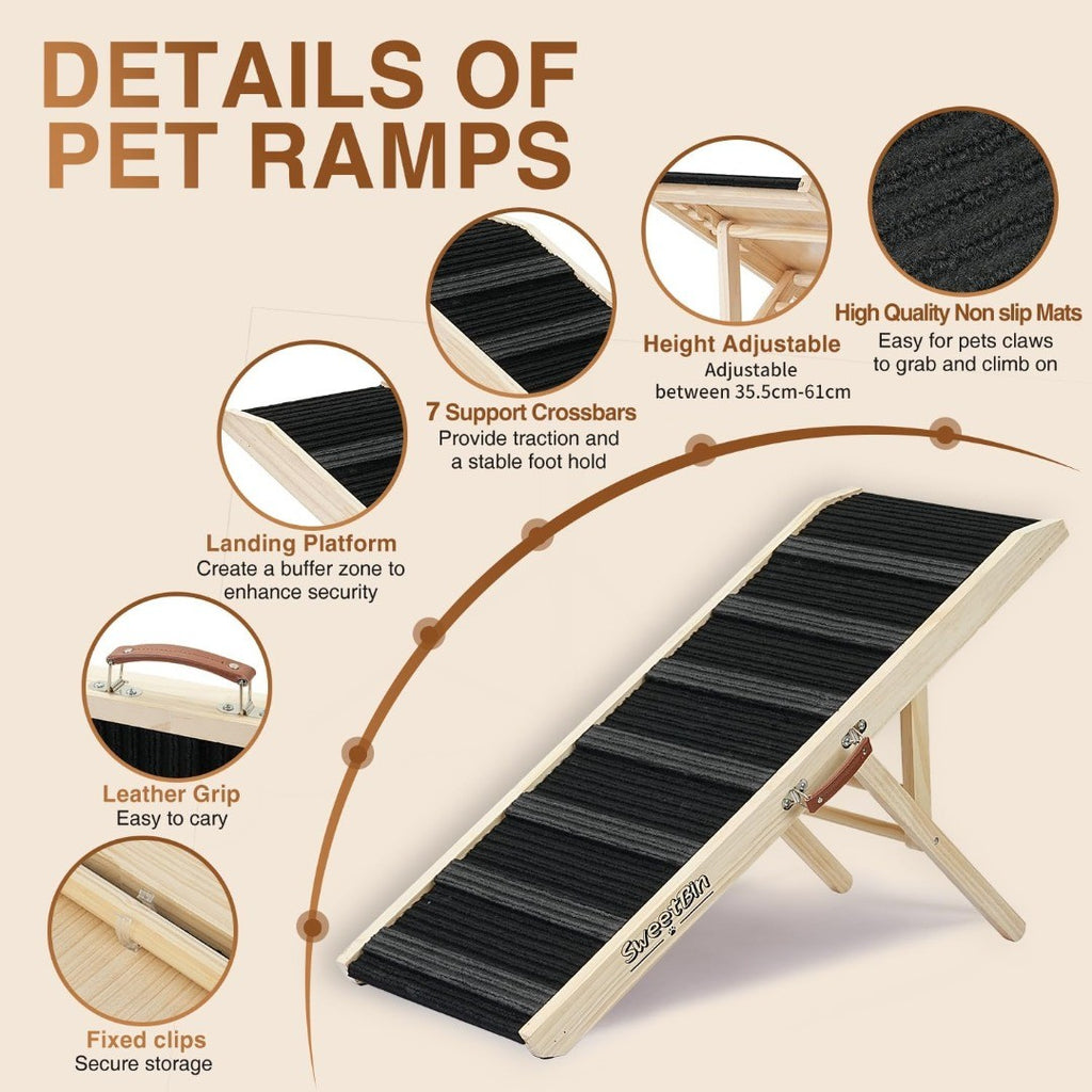 SWEETBIN Adjustable Folding Dog Ramp Natural Wood