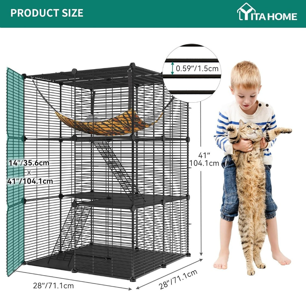 Cat Cage - 3-Tier DIY Playpen with Metal Wire and Extra Large Hammock