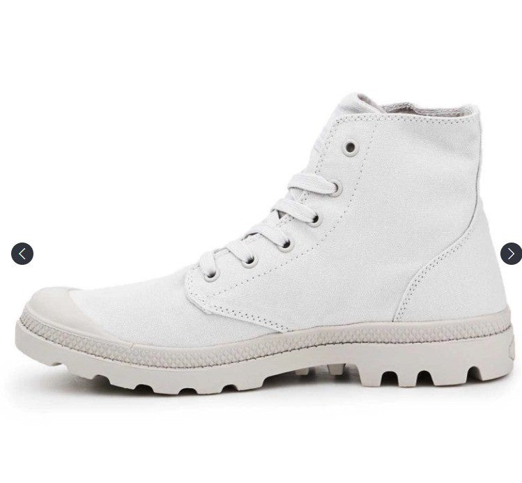 The shoes have a high lace-up upper, a round reinforced front and a textile insole. A strong and durable sole made of high-quality material guarantees good grip thanks to its solid tread. Palladium logo on the side. Comfort and convenience. Shoes ideal for everyday use, make them your urban sneakerboot for your city explorations.