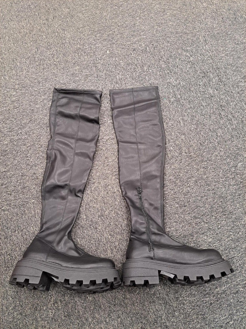 Take on new Heights with These Towering over-the Knee boots complete with Chunky Lug soles