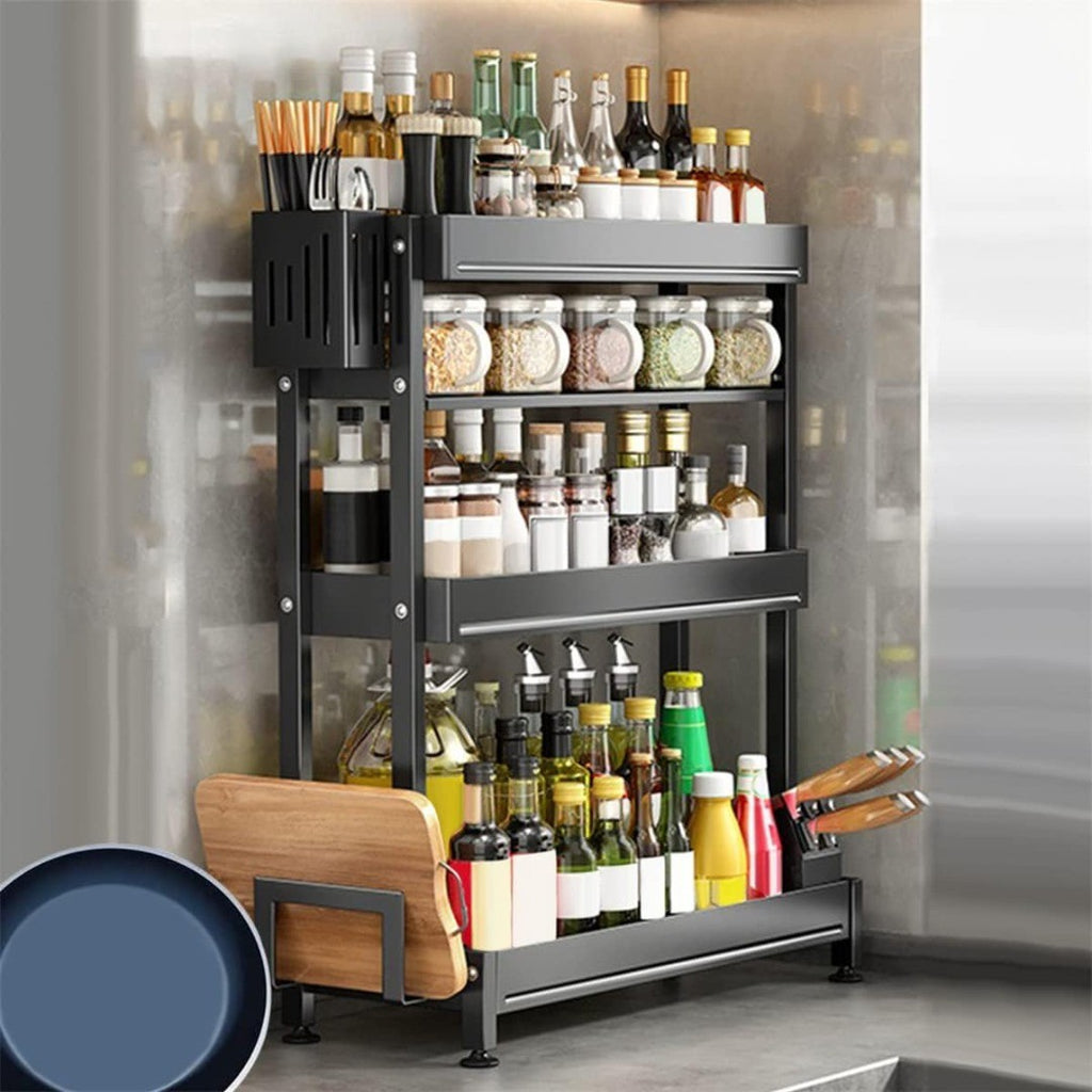 - Multifunctional Kitchen Organization: The spice rack is perfect for storing spices, herbs, jars, tea bags, cereals, preserves, salt, pepper, oils, condiments, sauces, and more, but also as a storage rack for bathroom. Save space and stay away from mess, keep your kitchen counter clean.