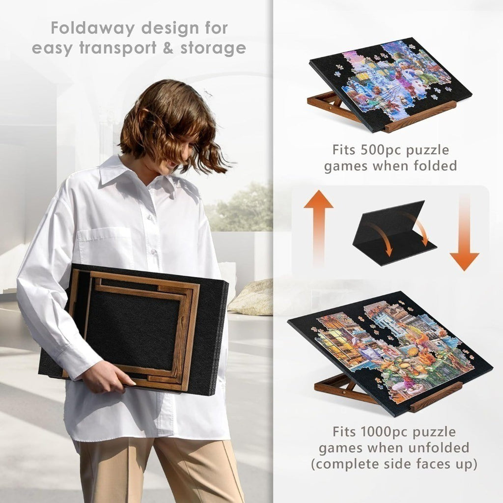 Foldaway Design - Our puzzle board features a foldaway function that makes it easy to store and take away. Fits 500 piece puzzles when folded, and 1000 piece puzzles when unfolded.