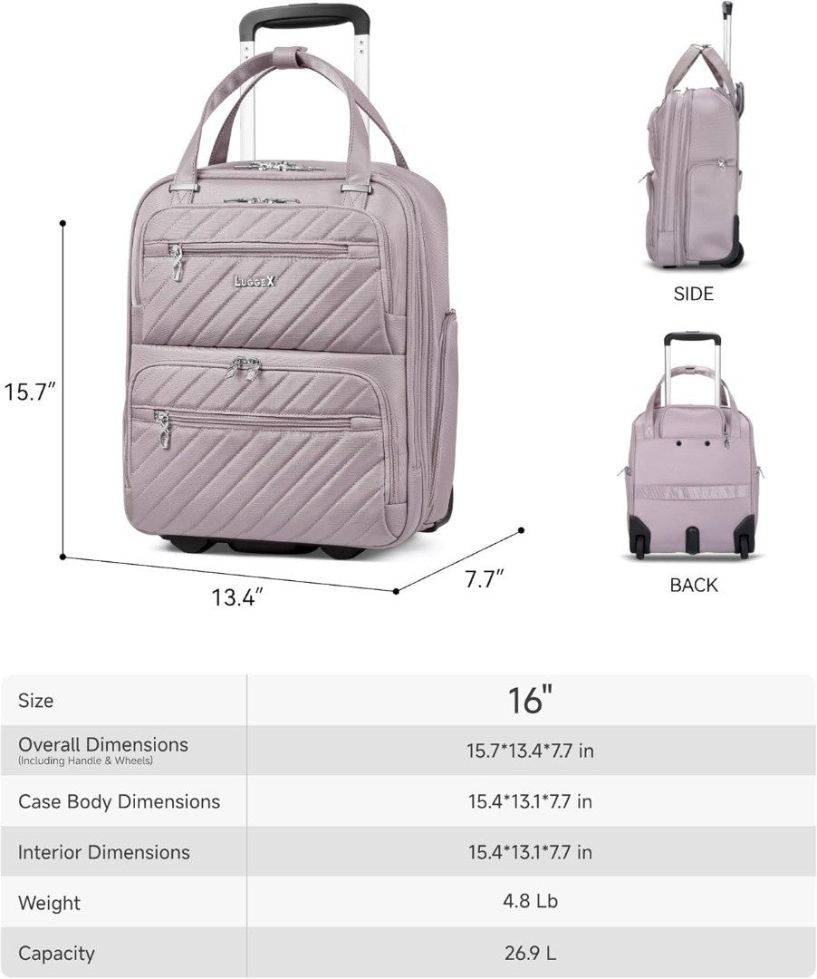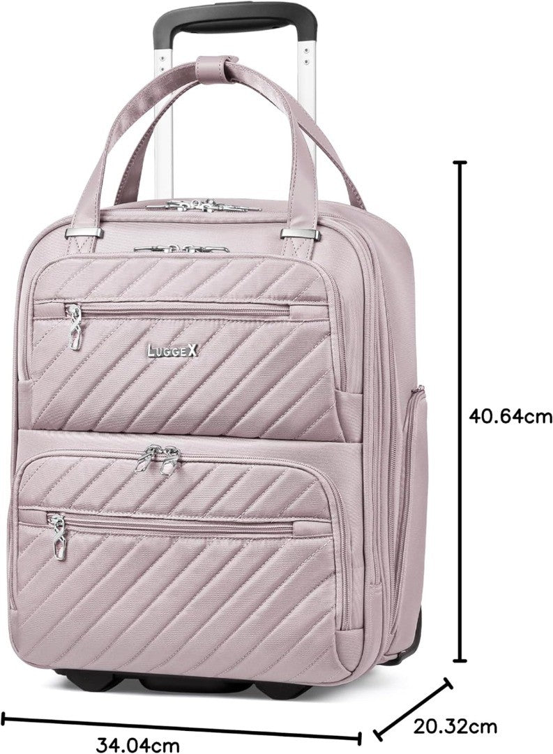 LUGGEX Underseat Cabin Bag Trolley Case 16in Grey-Pink