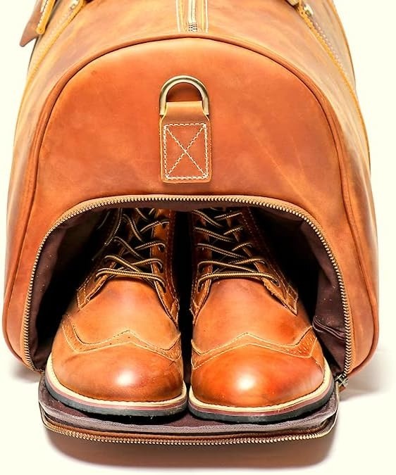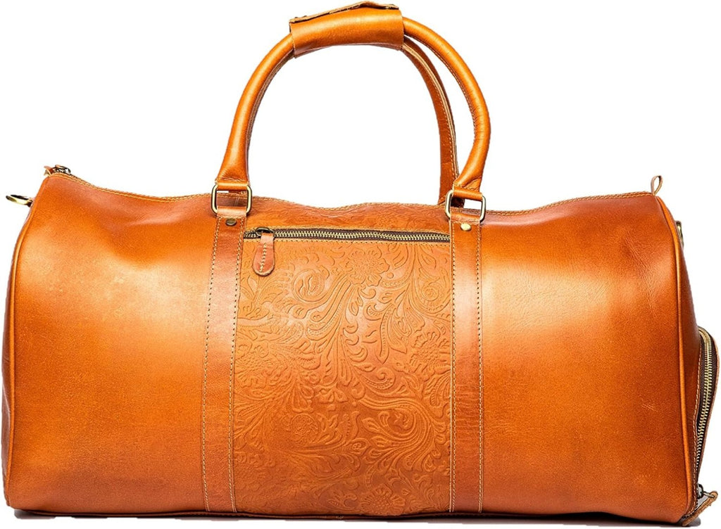 THE TANNERY Embossed Leather Travel Duffel Bag 22in Bourbon