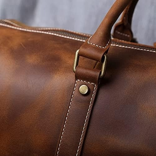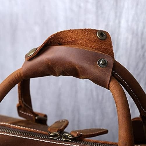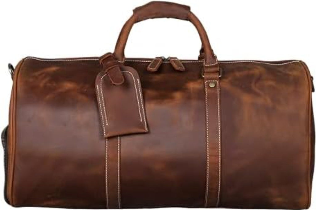 THE TANNERY Leather Travel Duffel Bag 22in Red Brown