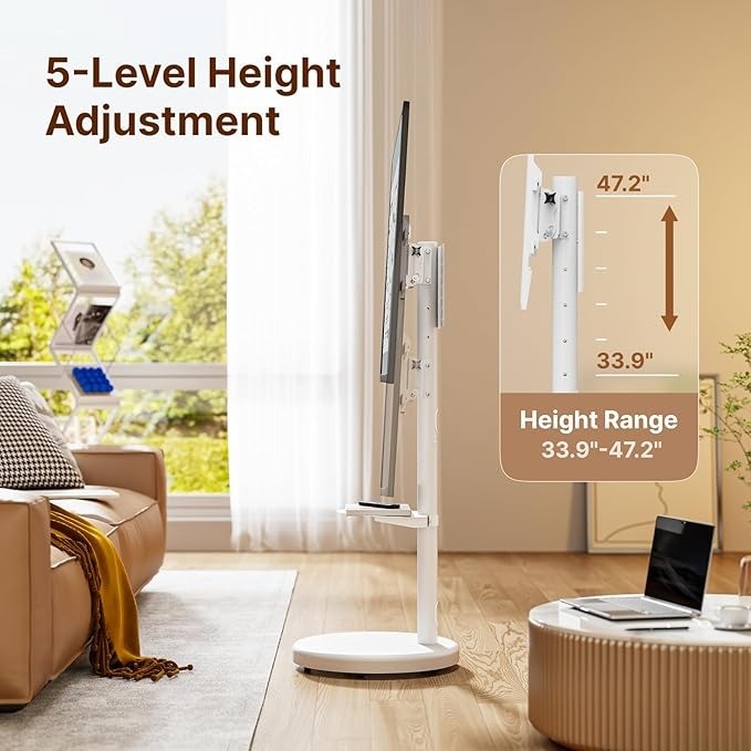 Adjustable Height for Perfect Viewing: Designed specifically for the US market, this rolling TV stand offers 5 adjustable height settings ranging from 33.9 to 47.2 inches, with 3.3-inch increments between each level. This allows you to customize the height for optimal viewing, ensuring comfort and convenience.