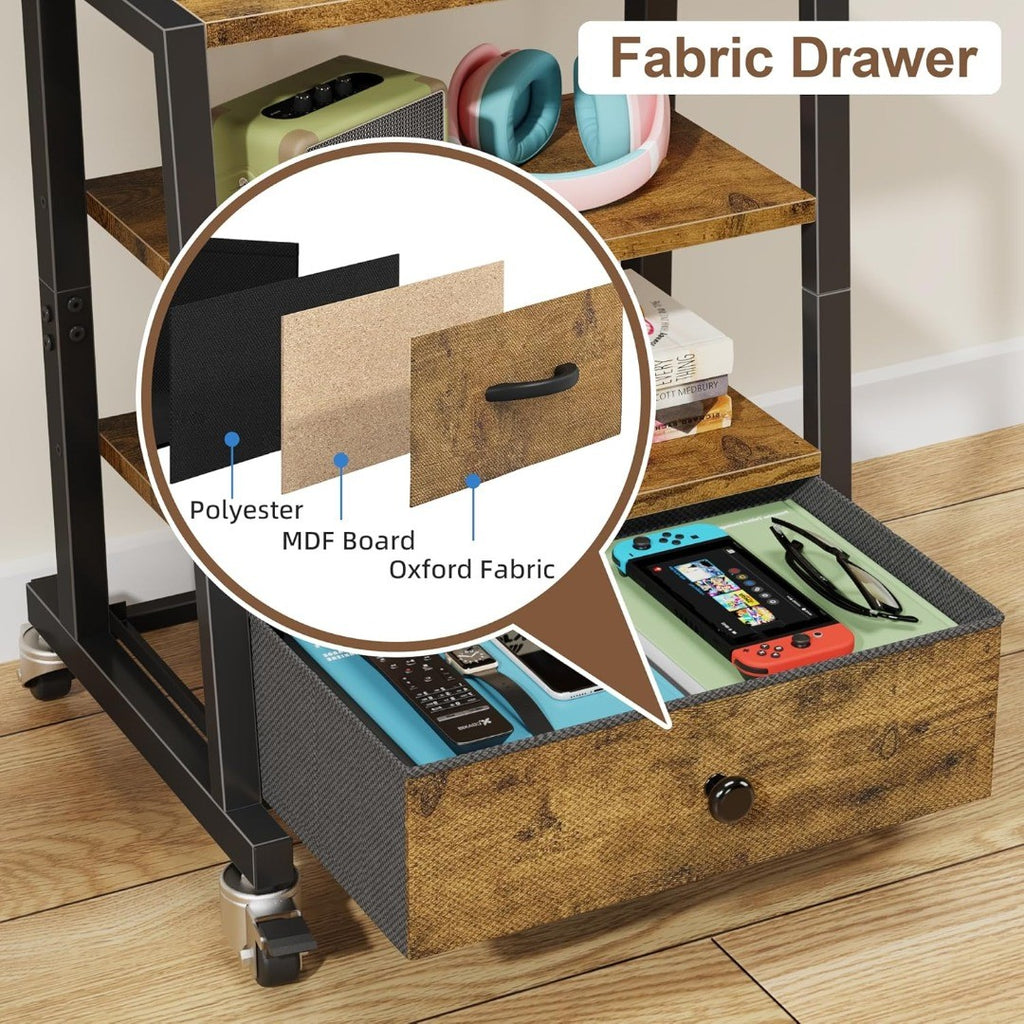 Rolling TV Stand on Wheels with Mount and Storage Fabric Drawer for 32-55 Inches TV, Adjustable Height Floor TV Stand for Livingroom, Bedroom, Office, Retro Brown