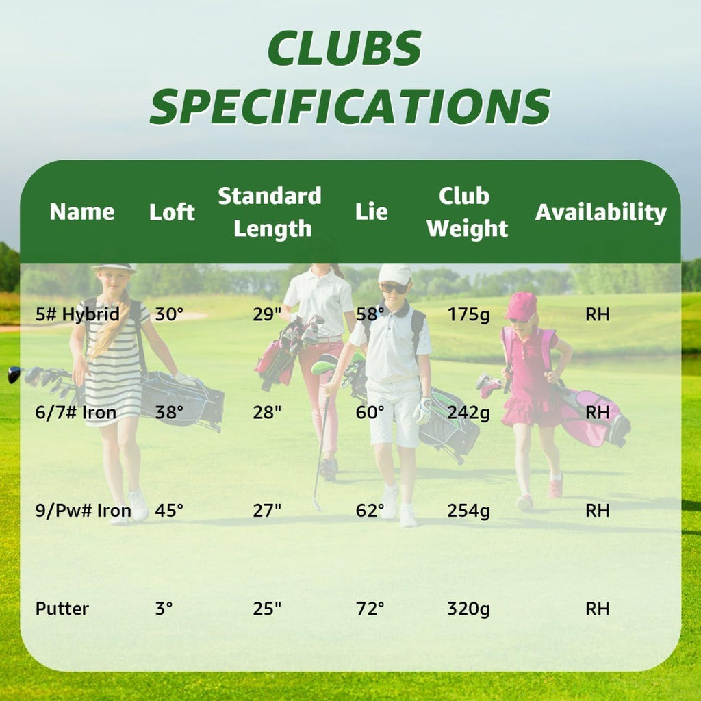 MURTLSOL 5 Pieces Junior Golf Clubs, Golf Set (5-8)(9-12)(12-14) Includes Stand Bag, 1# Drive, 5# Hybrid, 6/7#, 9/P# Irons and Putter Right Hand