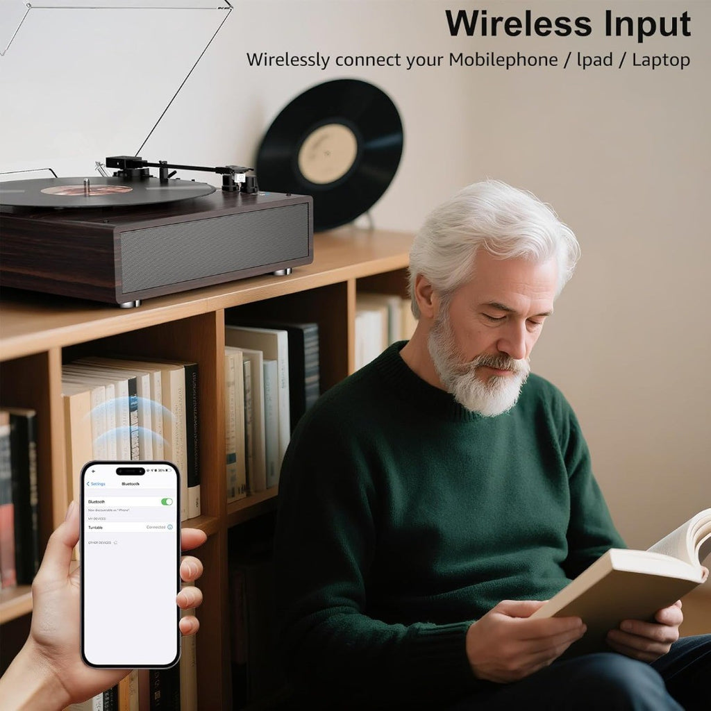 Wireless Streaming - Built-in BT 5.3 input playback, you can enjoy your vinyl collection with all the convenience of wireless technology. You can listen to your favourite music from your Bluetooth compatible device like iPhone and Android smartphones, tablets, etc.