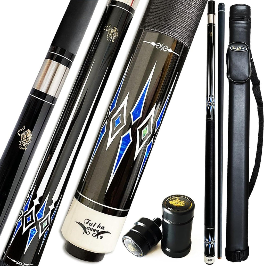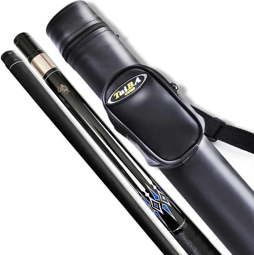 TaiBA 2-Piece Pool Stick With Carry Case, 13mm Tip, 147cm (58 inch), Hardwood Canadian Maple Professional Billiard Pool Cue Stick 20 Oz Black