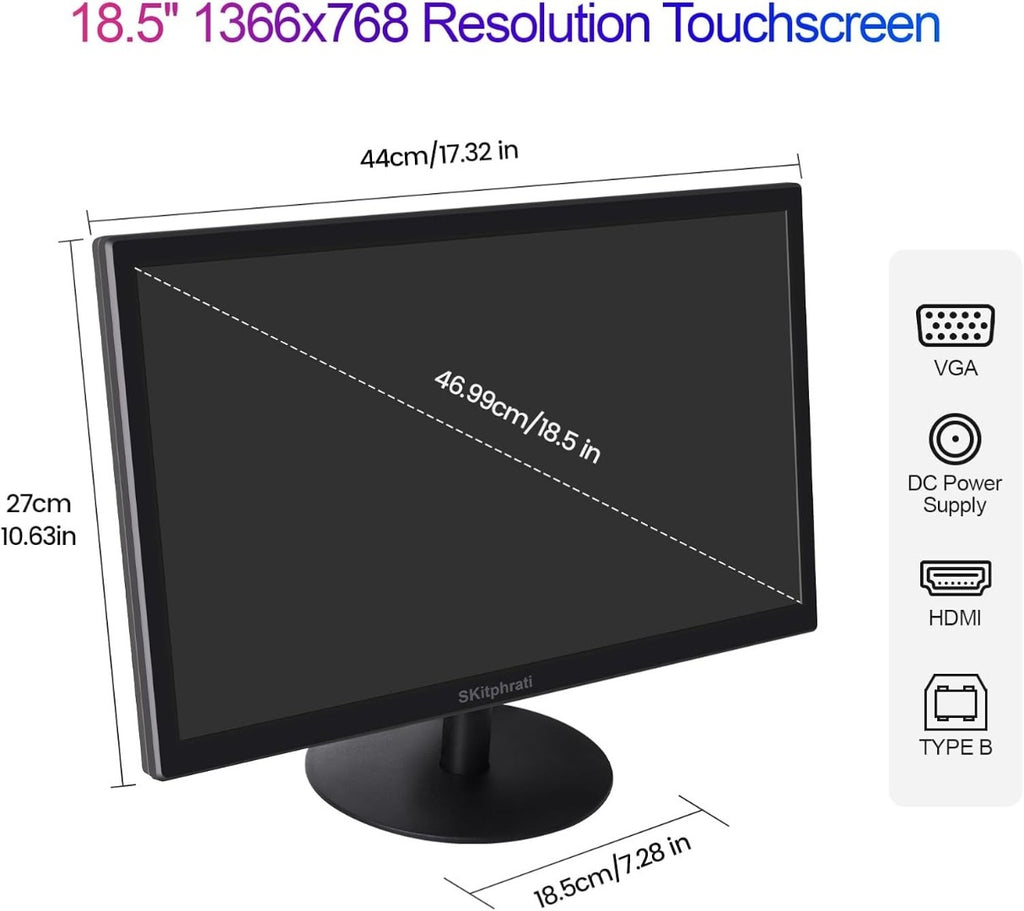 18.5 inch 1366x768 Touchscreen Monitor 10-Point Multi Touch Screen with HDMI, VGA and Type B Ports, 75Hz, 16:9 Aspect Ratio, VESA, Secondary Monitor for POS Win Ras Pi