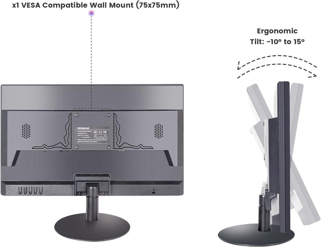 - Built in Adjustable Stand - Ergonomic design with +10° ~ -15° tilt for a comfortable viewing experience. With Metal Adjustable POS Stand, for Office, POS, Retail, Restaurant, Bar, Gym, Warehouse