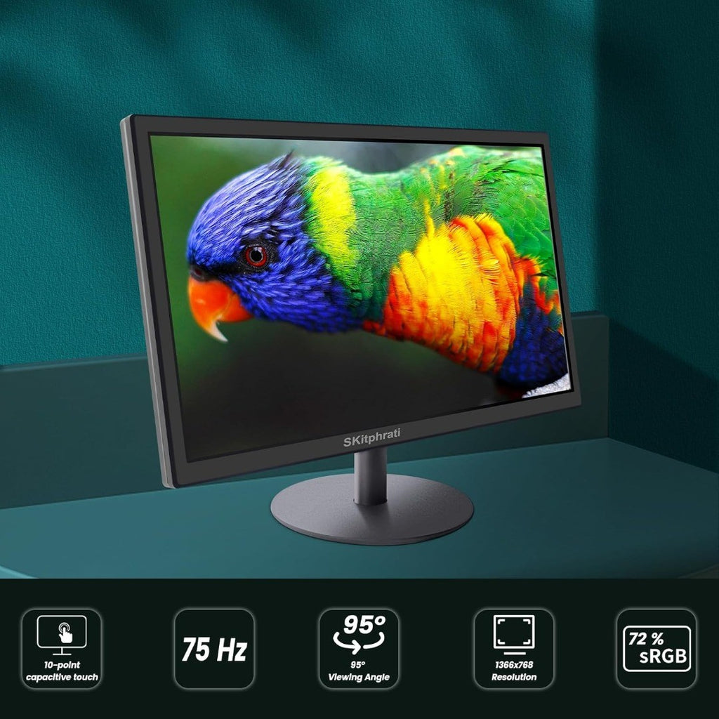 - FHD Touchscreen Monitor - 18.5 inch touch screen PC monitor features Full HD 1366x768 resolution, 250cd/㎡ brightness, 95° viewing angle and 75Hz refresh rate. 10-point multi-touch capacity delivers a smooth and intuitive touch experience