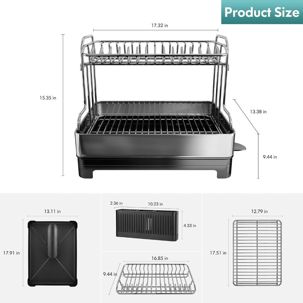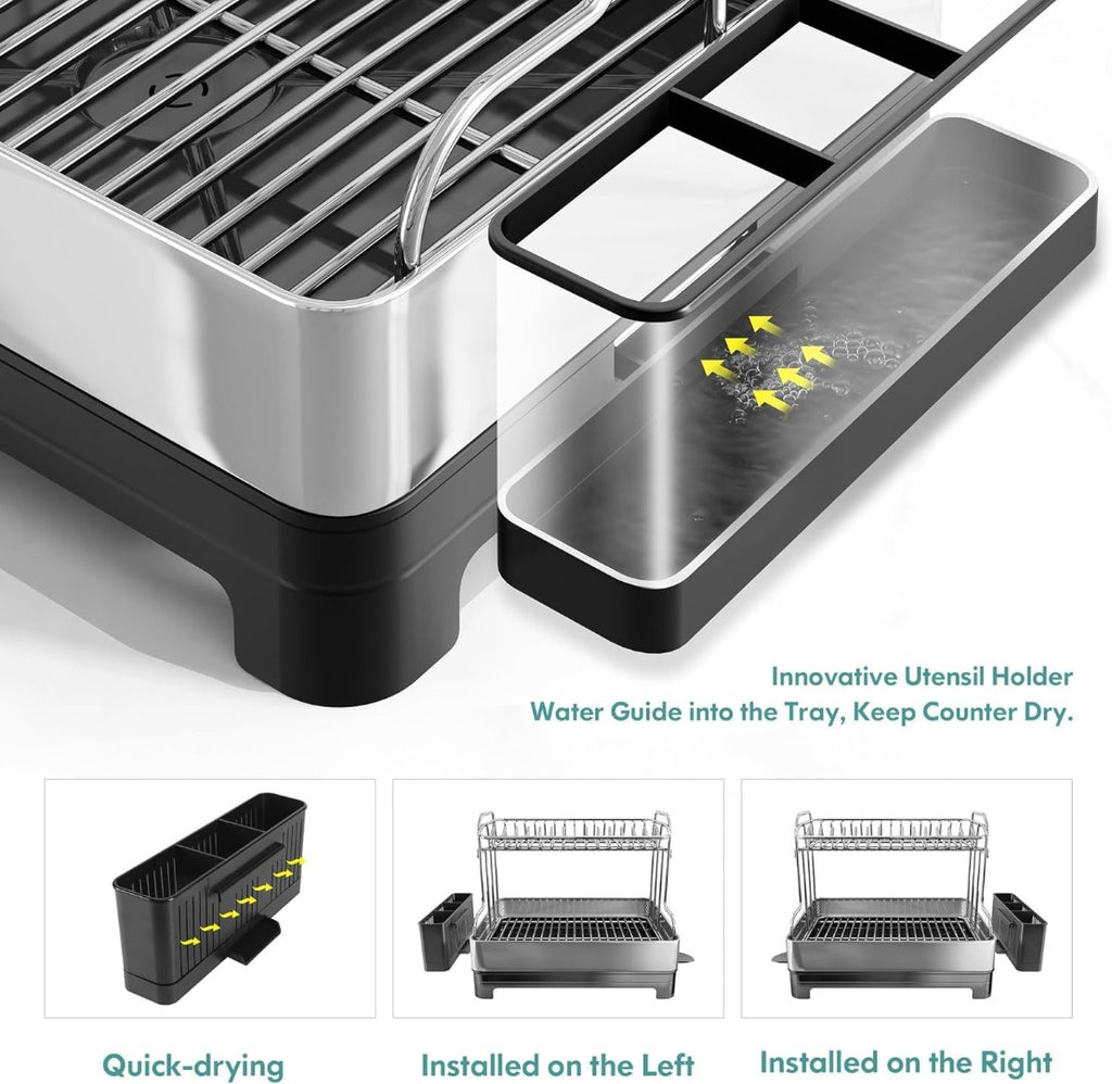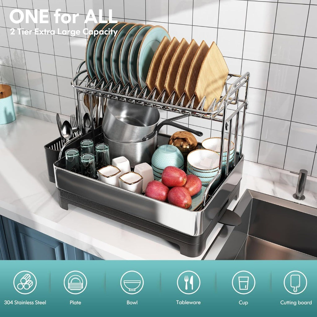 2-Tier Dish Drainer Rack Large Capacity