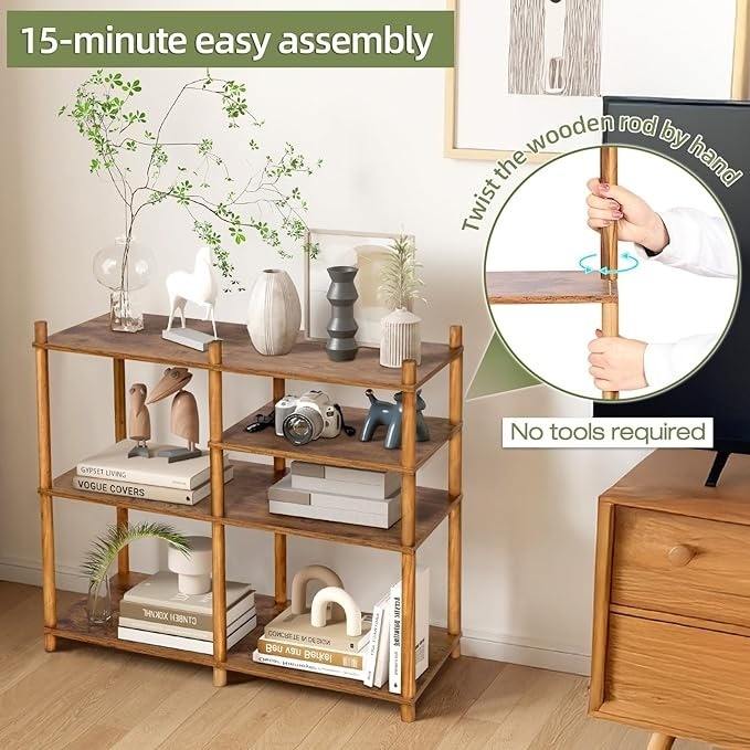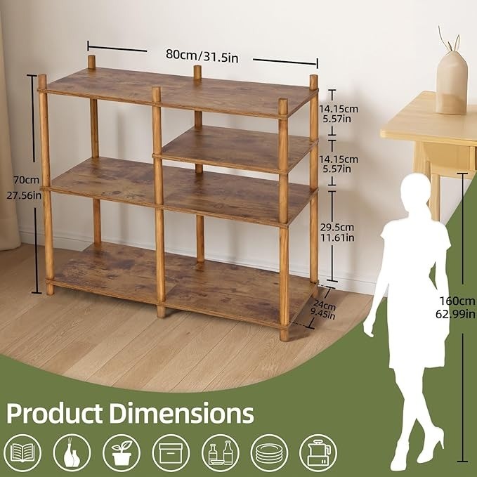 YGYQZ 3 Tier Shelving Unit, Bookcase Wooden Bookshelf Multifunctional Display Shelves for Living Room, Bedroom, Rustic Brown 80x30x70 cm