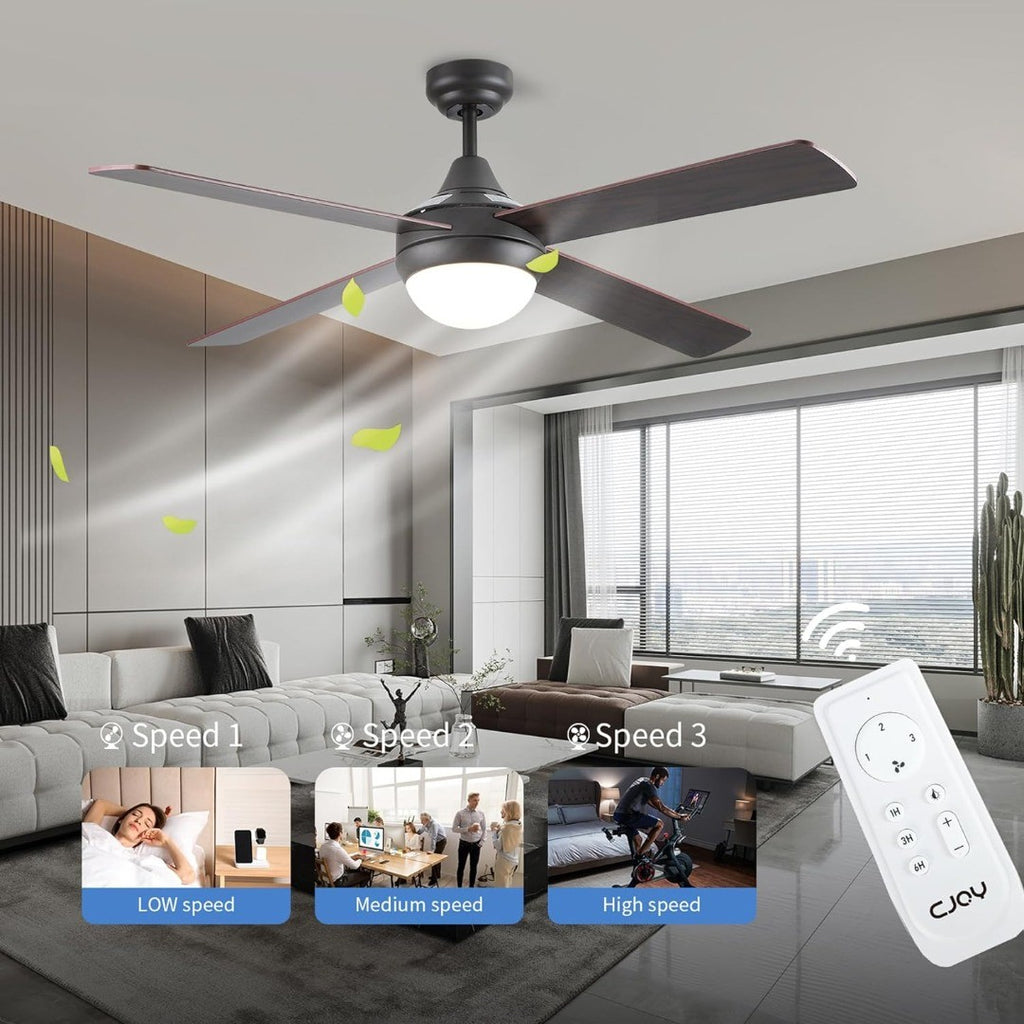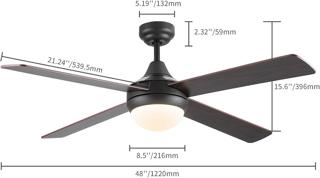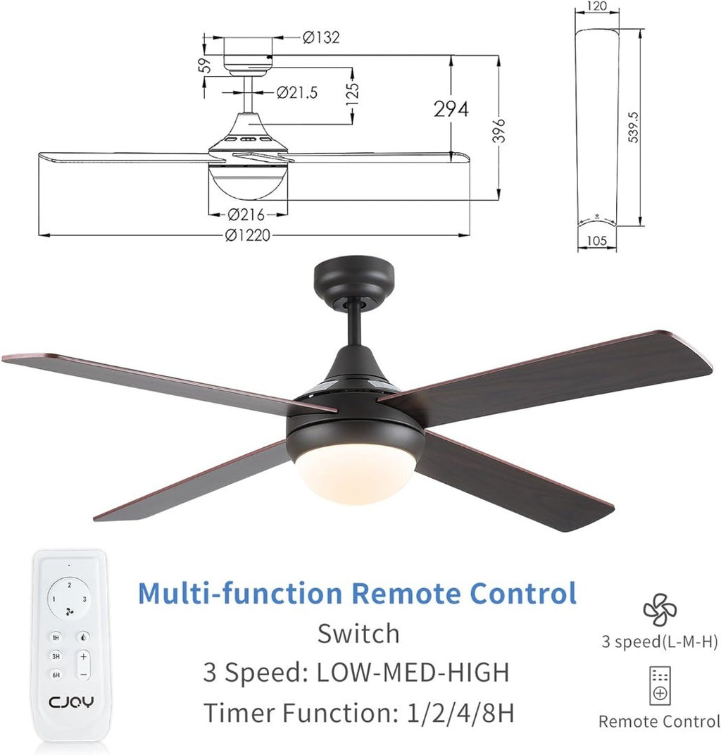 CJOY Bronze and Dark Wood Ceiling Fan Light with Remote Control, Dimmable, 48in, 4 Blades Quiet Reversible Motor, Sloped Ceiling Light with Fan for Bedroom