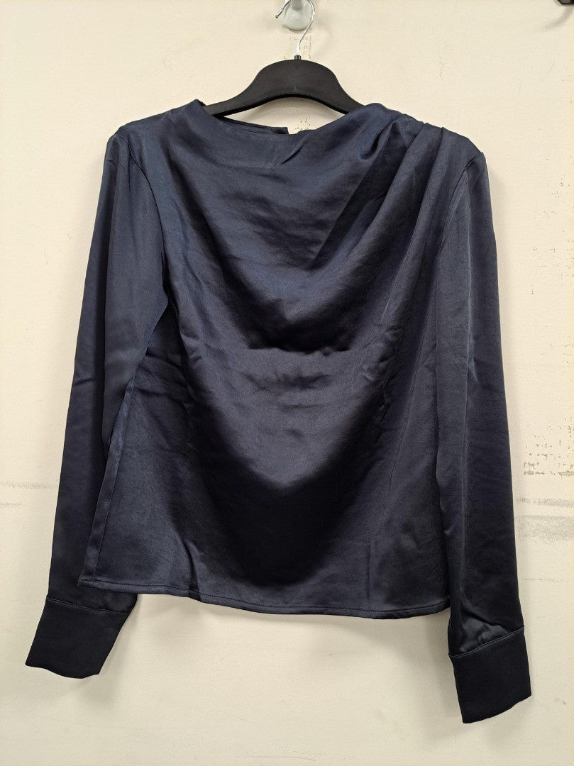 4TH & RECKLESS Tall Satin Ruched Long Sleeve Top co-ord in Navy, Size,: UK8
