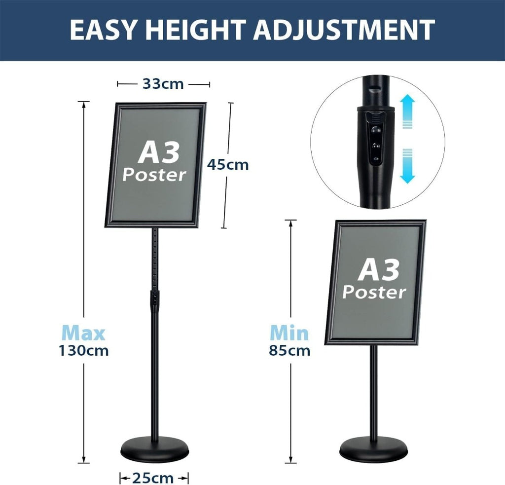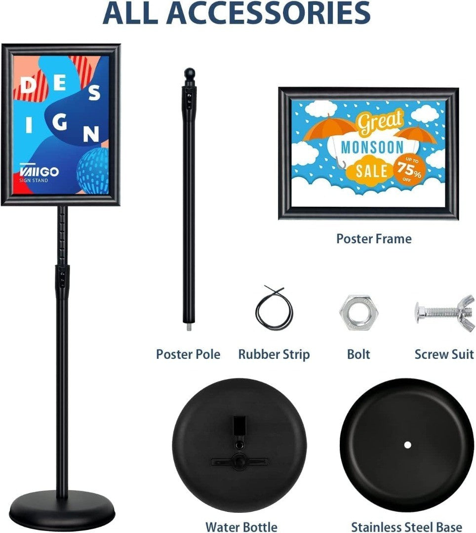 VAIIGO A3 Adjustable Aluminum Poster Stand with Snap Frame and Stable Round Base (Black) 1 pack