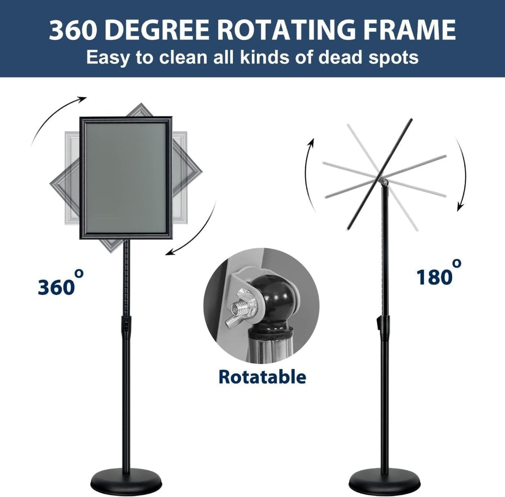 - Adjustable:Snap frame can be rotated in 360 degrees and allows to be positioned in both portrait and landscape orientation. Height is adjustable which extends from 65cm to 105cm