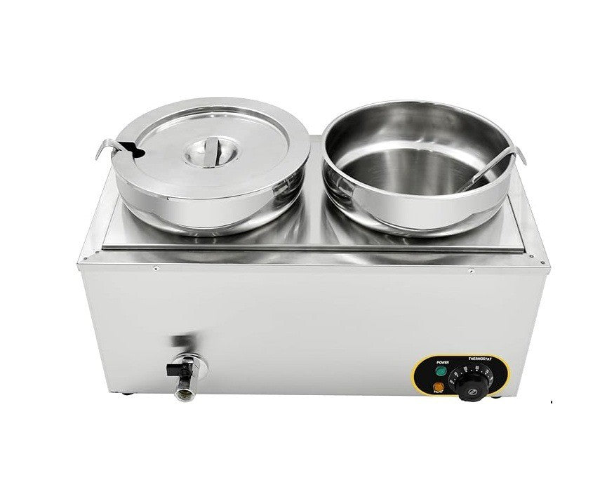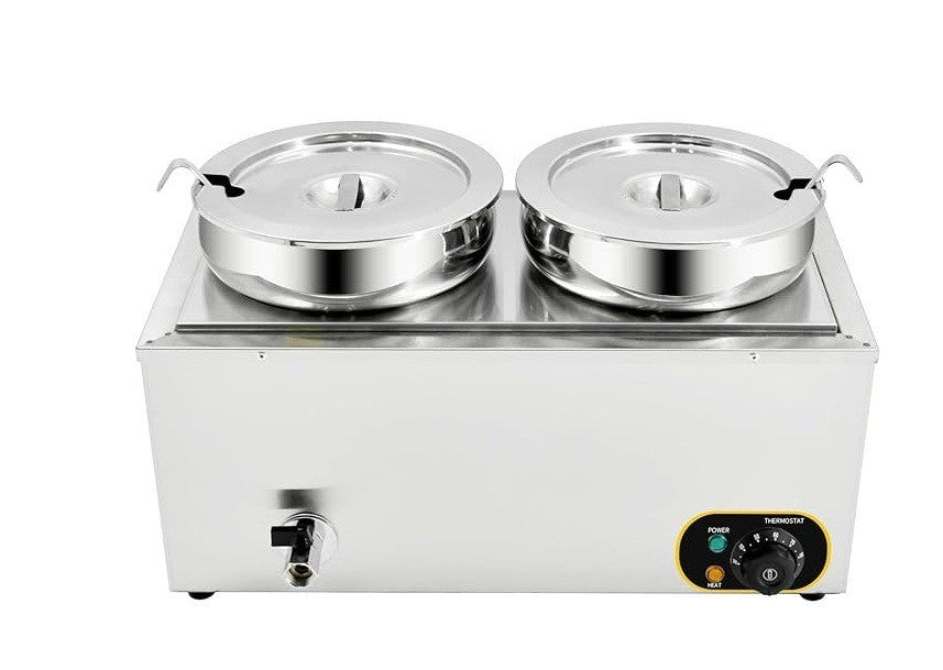 Commercial Bain Marie,1500W Stainless Steel Electric Food Warmer Temperature Control with Lids, Drain Tap, Containers 7.4L x2