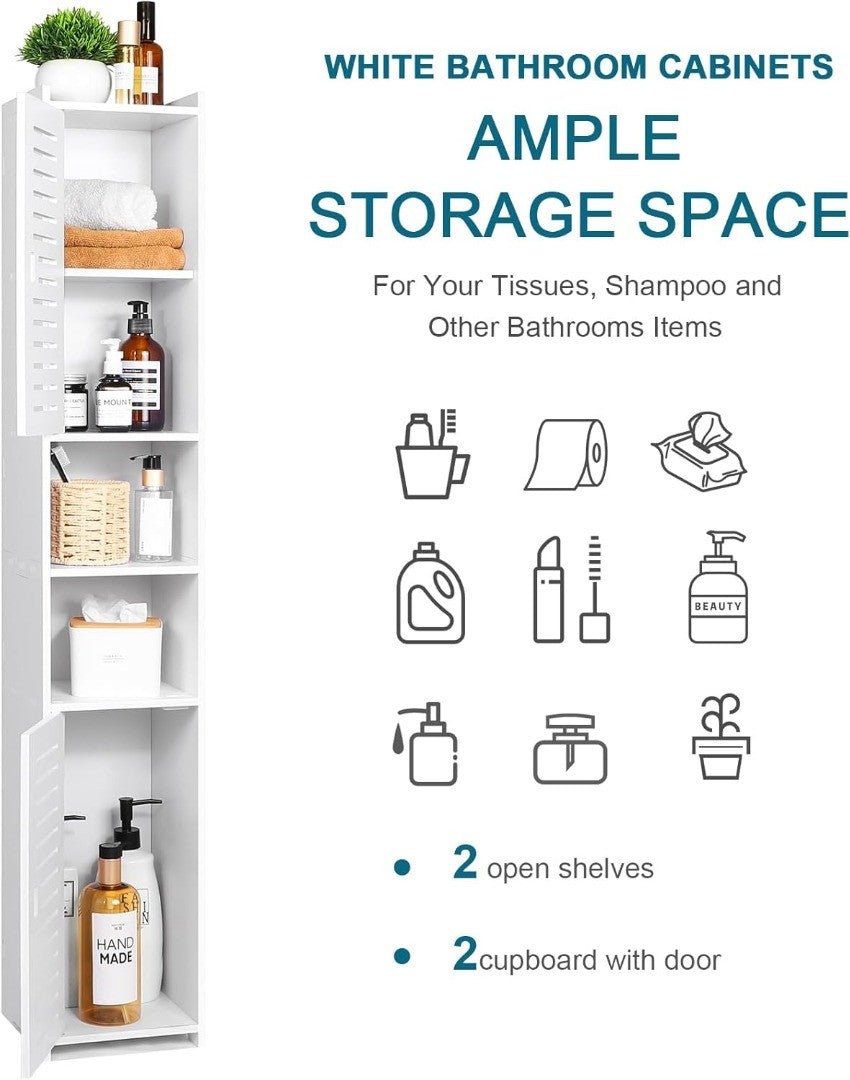 AIIKTOTA Bathroom Storage Cabinet, Floor Standing Display Cabinet, Home Storage Furniture Organizer Unit for Office Living Room Kitchen Entryway, White.