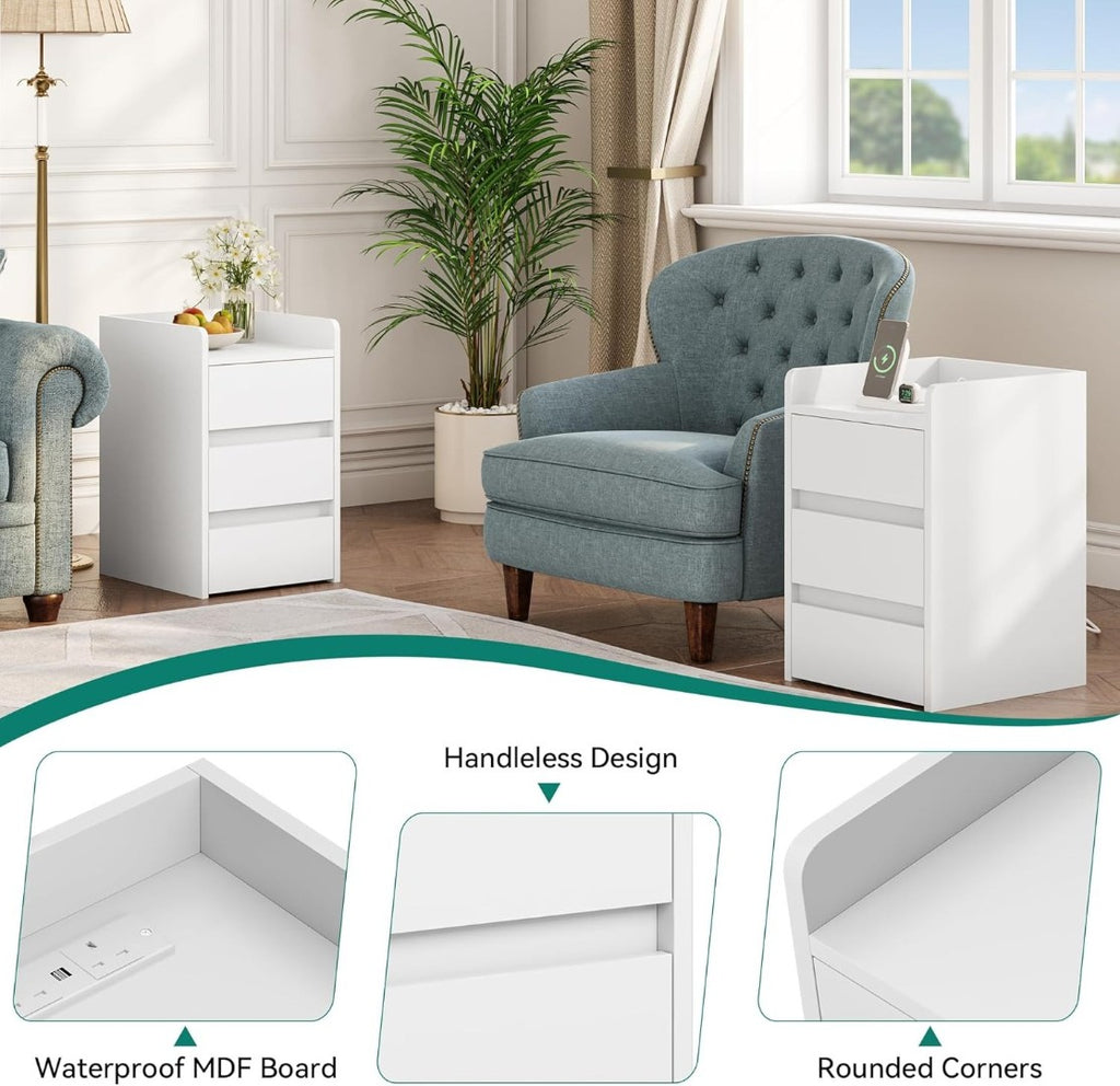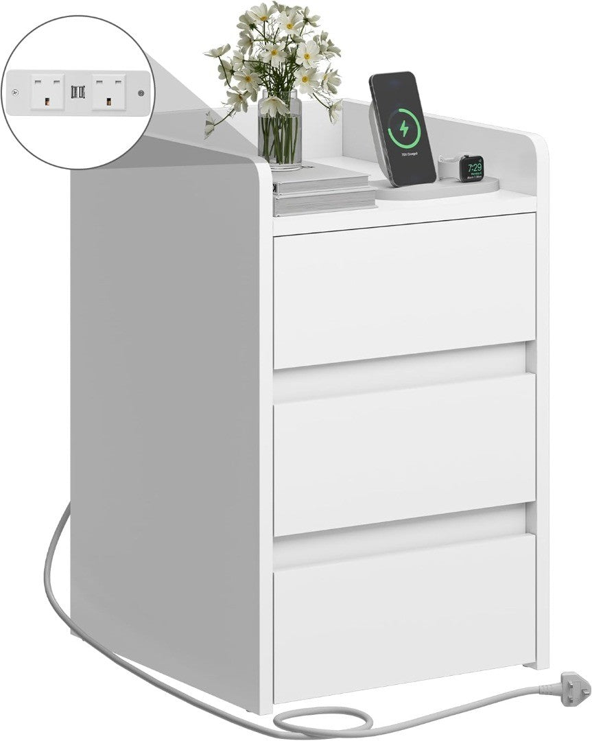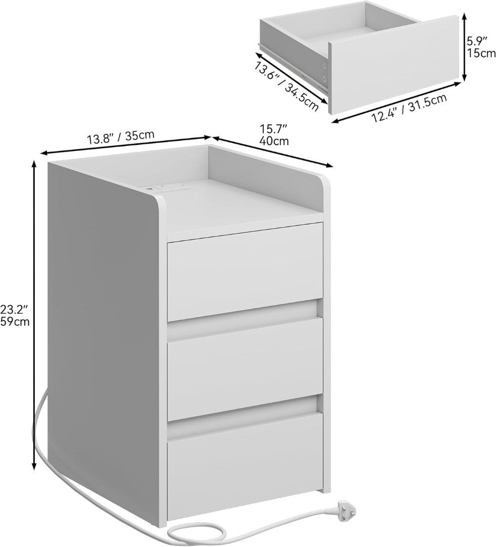 YITAHOME Bedside Table with 3 Drawers and Power Station, Modern Nightstand End Table, Water-Resistant Storage Side Table for Living Room and Bedroom (White)