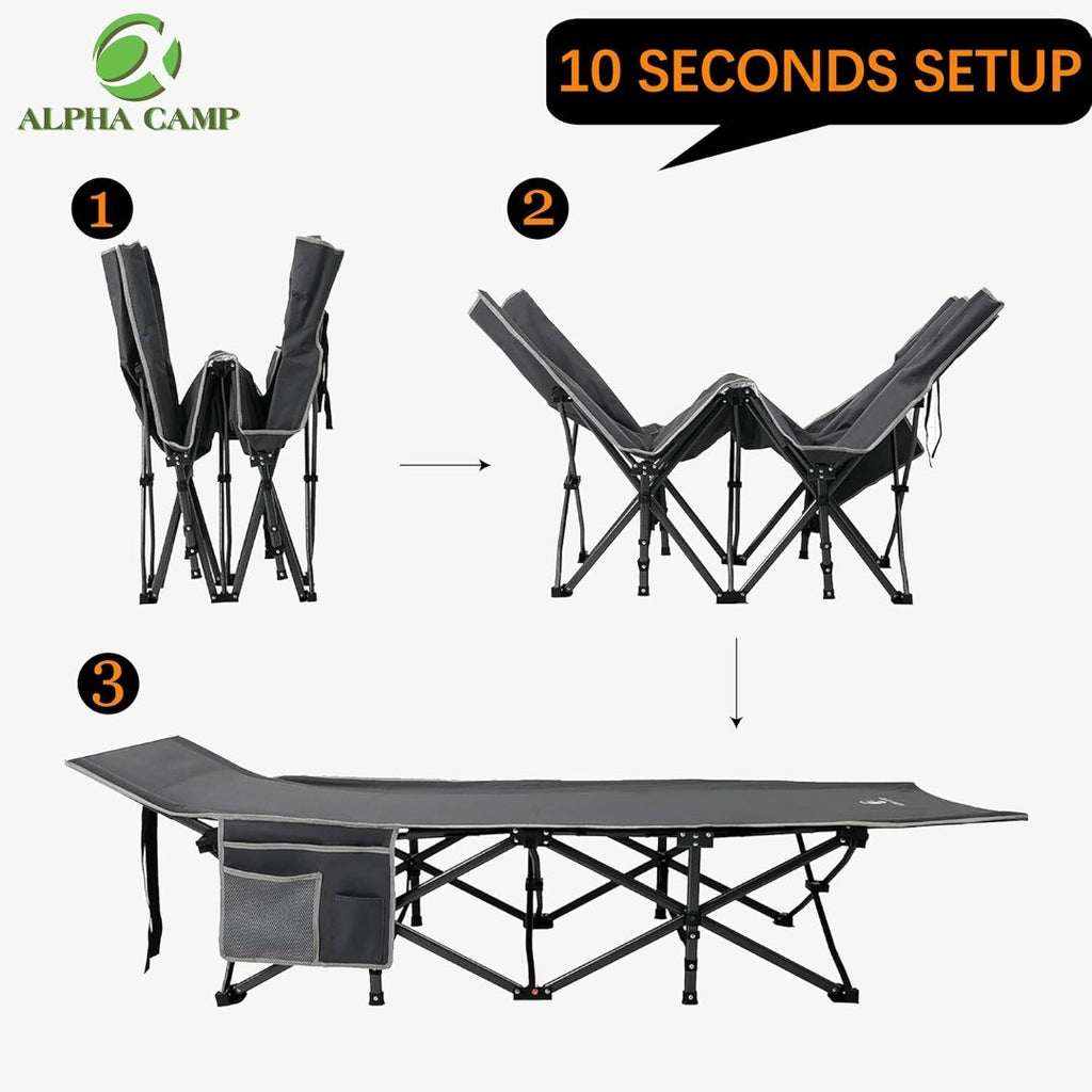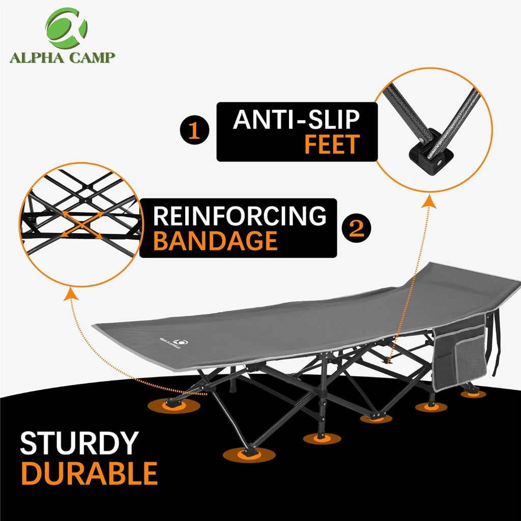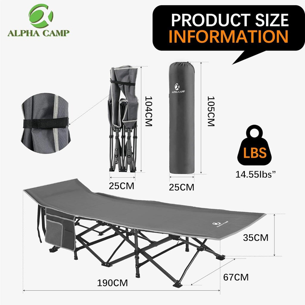 Camping Bed for Adults Folding Camp Bed Heavy Duty Camping Beds Up to 280 kg Portable Camping Cot with Carry Bag for Outdoor Travel Fishing Office, Grey