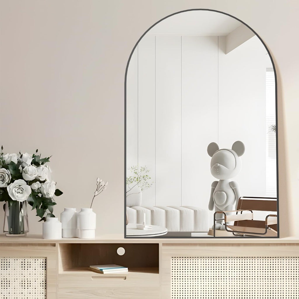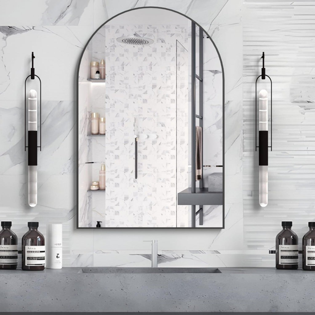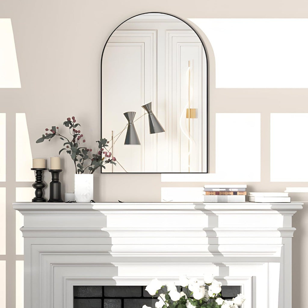 Application Scenario: This 50 x 75cm half arch-shaped metal frame mirror can be used as the entrance wall mirror, bedroom mirror, corridor mirror, sink mirror, or bathroom mirror. It is an art decorative mirror and a modern mirror
