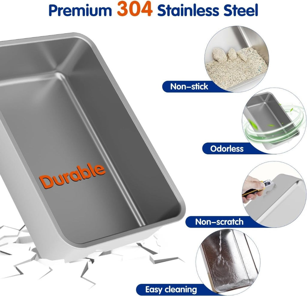 Spacious Design: The Stainless Steel Cat Litter Box measures 60*40*39 cm, allowing ample space for up to 20 litres of cat litter, ensuring your feline companion has a comfortable and roomy place to do their business.