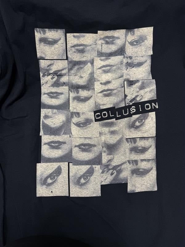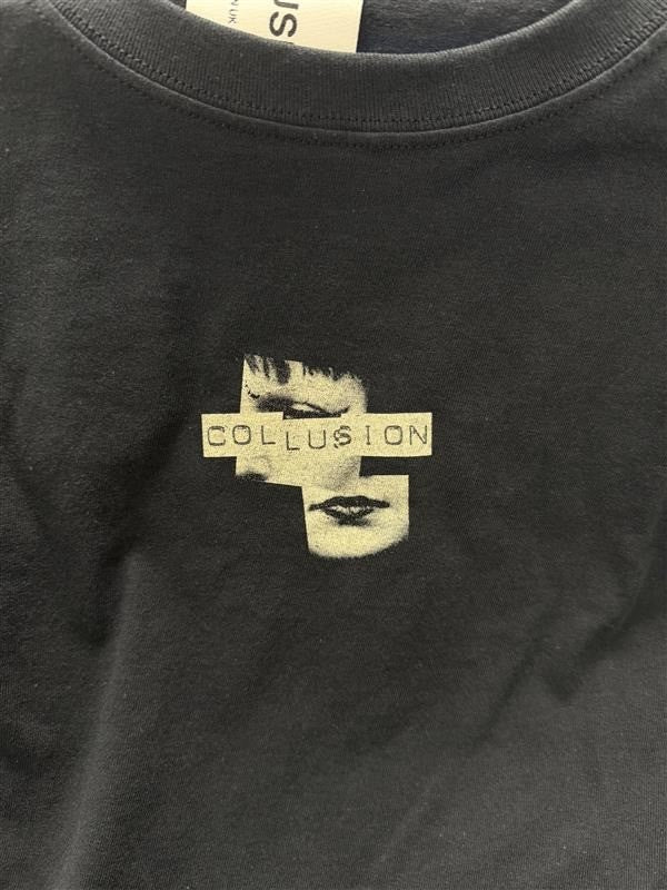 The COLLUSION t-shirt with vintage print in black short-sleeved, crew neck shirt made of 100% cotton.