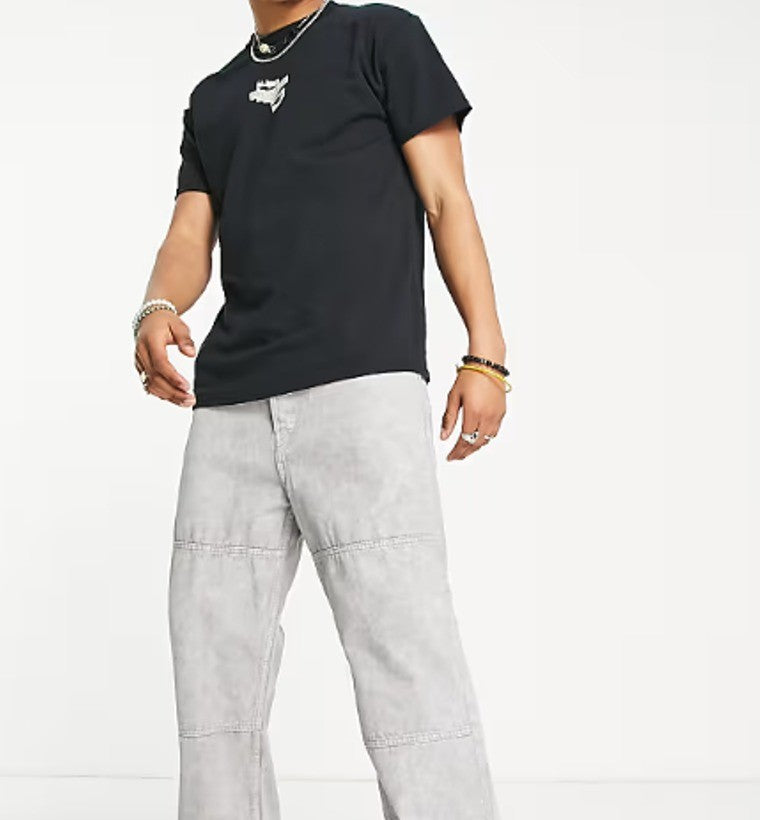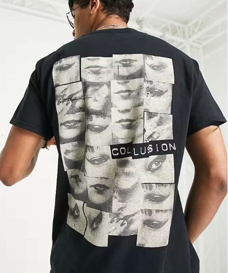 COLLUSION Mens T-shirt with Print Short-Sleeved Cotton Tee Tops in Black Size XL