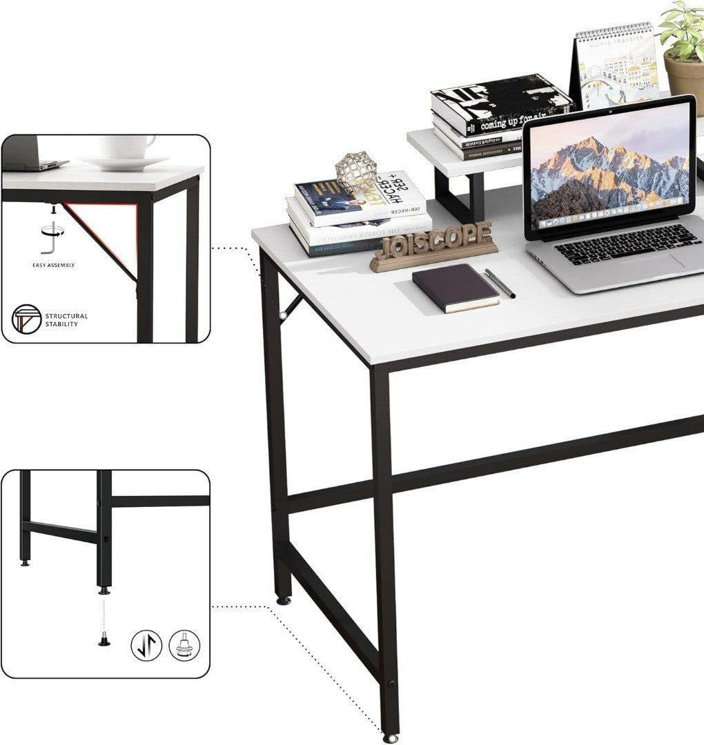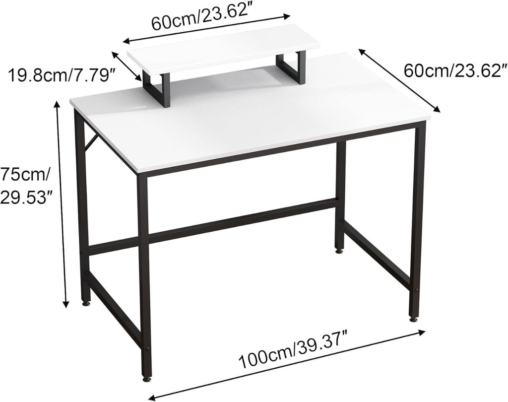 HOMEYFINE Computer Desk – Office Workstation with Storage Shelf & Monitor Stand | 100x60cm White Finish