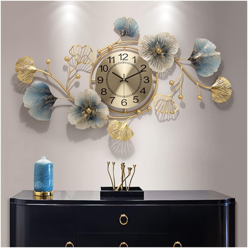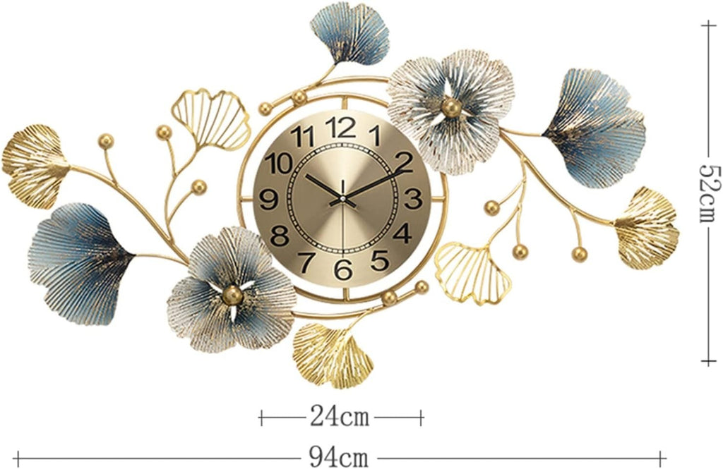 Large Silent Modern Decorative Wall Clock Elegant Metal Wall Clock Ginkgo Leaf for Living Room Bedroom 94 x 52cm