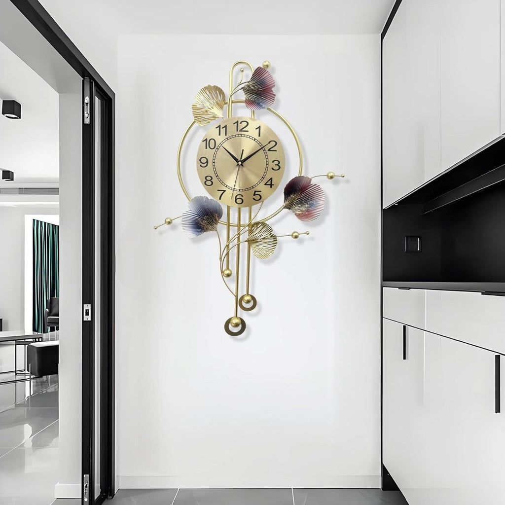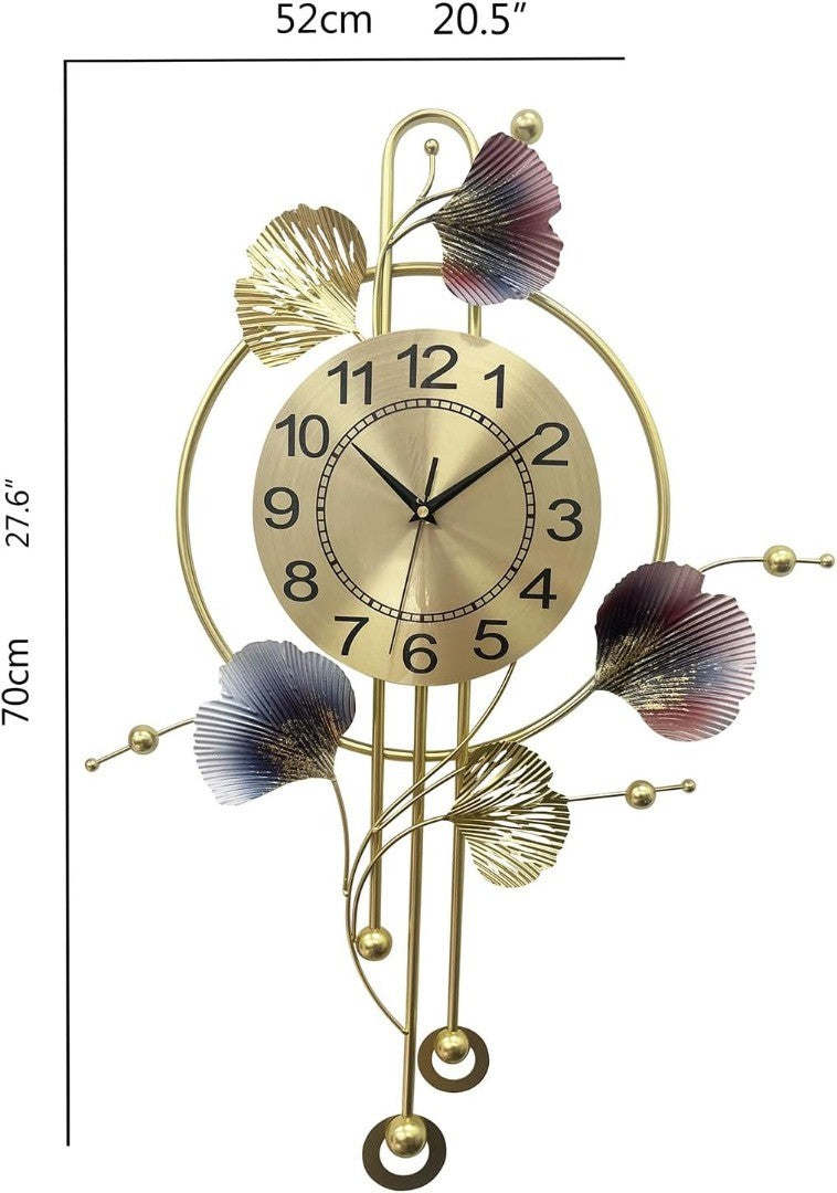 Large Decorative Wall Clock - Modern Silent Non-Ticking Wall Clocks - Metal Iron Ginkgo Leaf Design Fancy Style Wall Quartz Clock for Living Room Bedroom Hotel Porch (Colors, 70x52CM)
