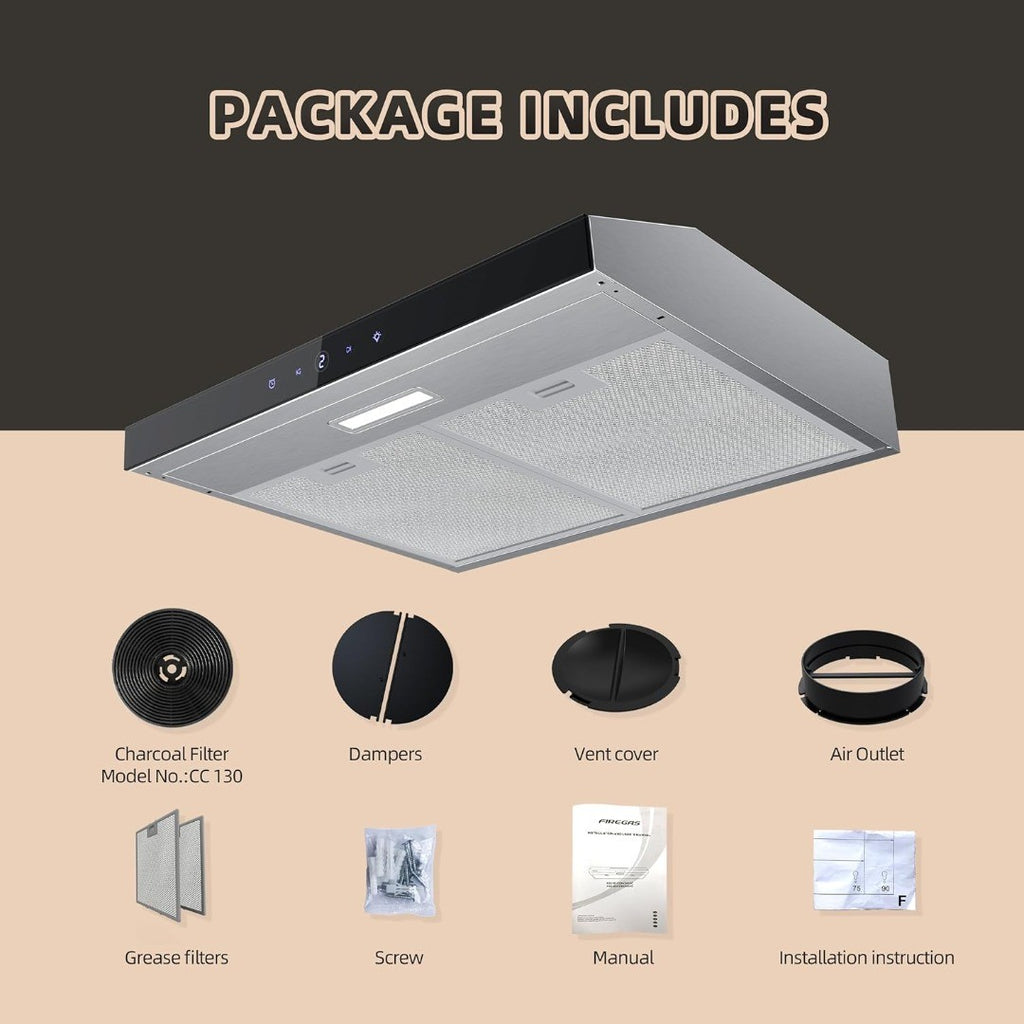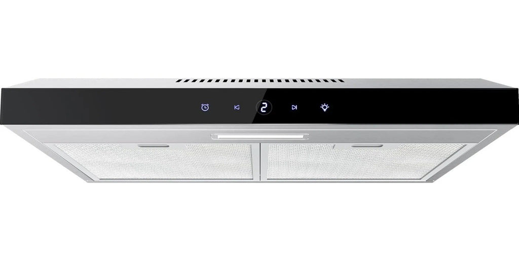 TOUCH SCREEN: This hood is equipped with a touch screen control with 3 adjustable speeds. It is also equipped with a delayed stop function, which can be set for a delayed downtime of 1-9 minutes.