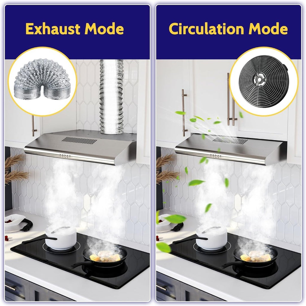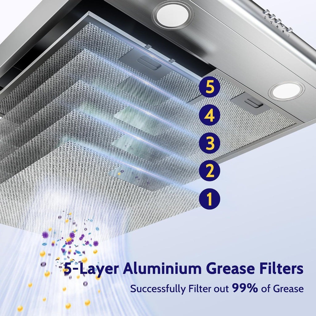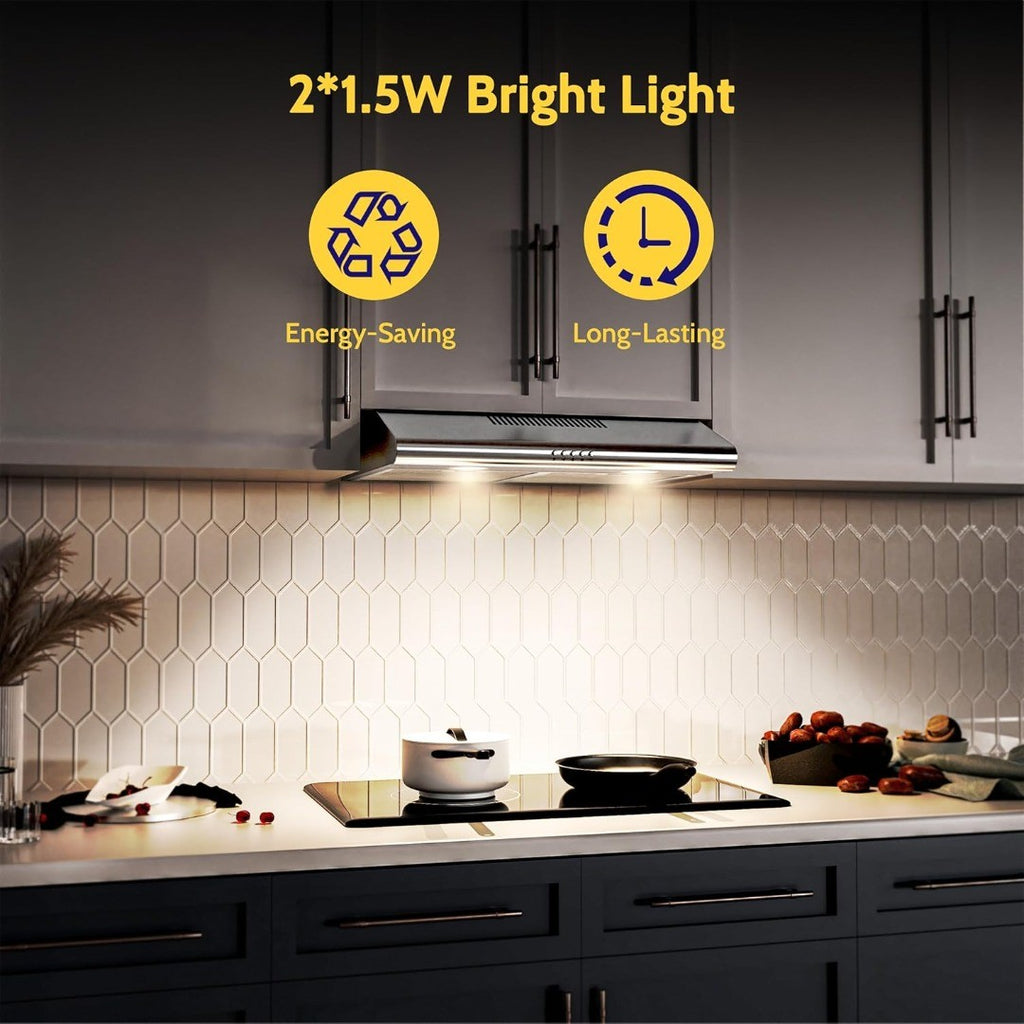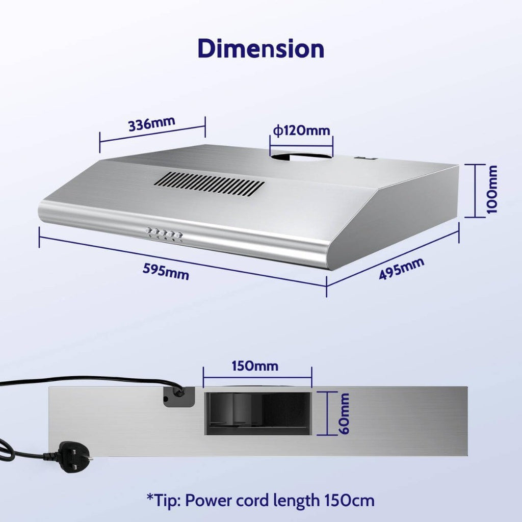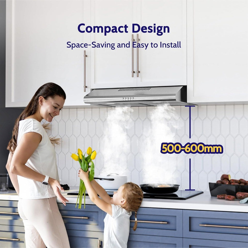 FIREGAS Visor Cooker Hood 60 cm, Brushless Motor Extractor Hood Under Cabinet Hood Wall Mounted Extractor Fan, 250 m³/h, Top & Rear Venting, Silver