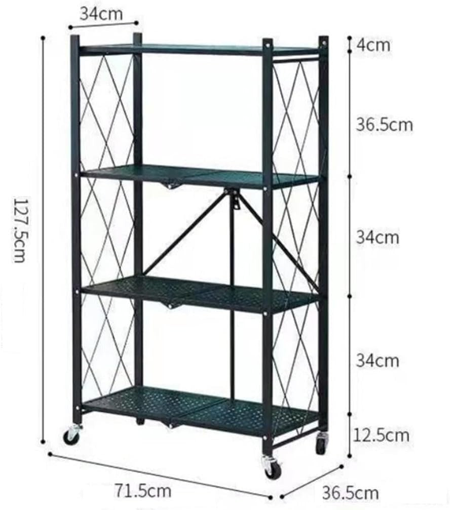 Foldable Storage Shelf Unit on Wheels Large Capacity (No Assembly) Heavy Duty Steel 4-Shelving Organizer Rack for Kitchen, Garage and Laundry Bathroom Tool Organization (4, Black) estimated size: 72x34x125cm