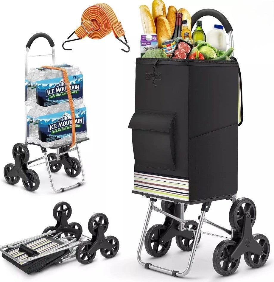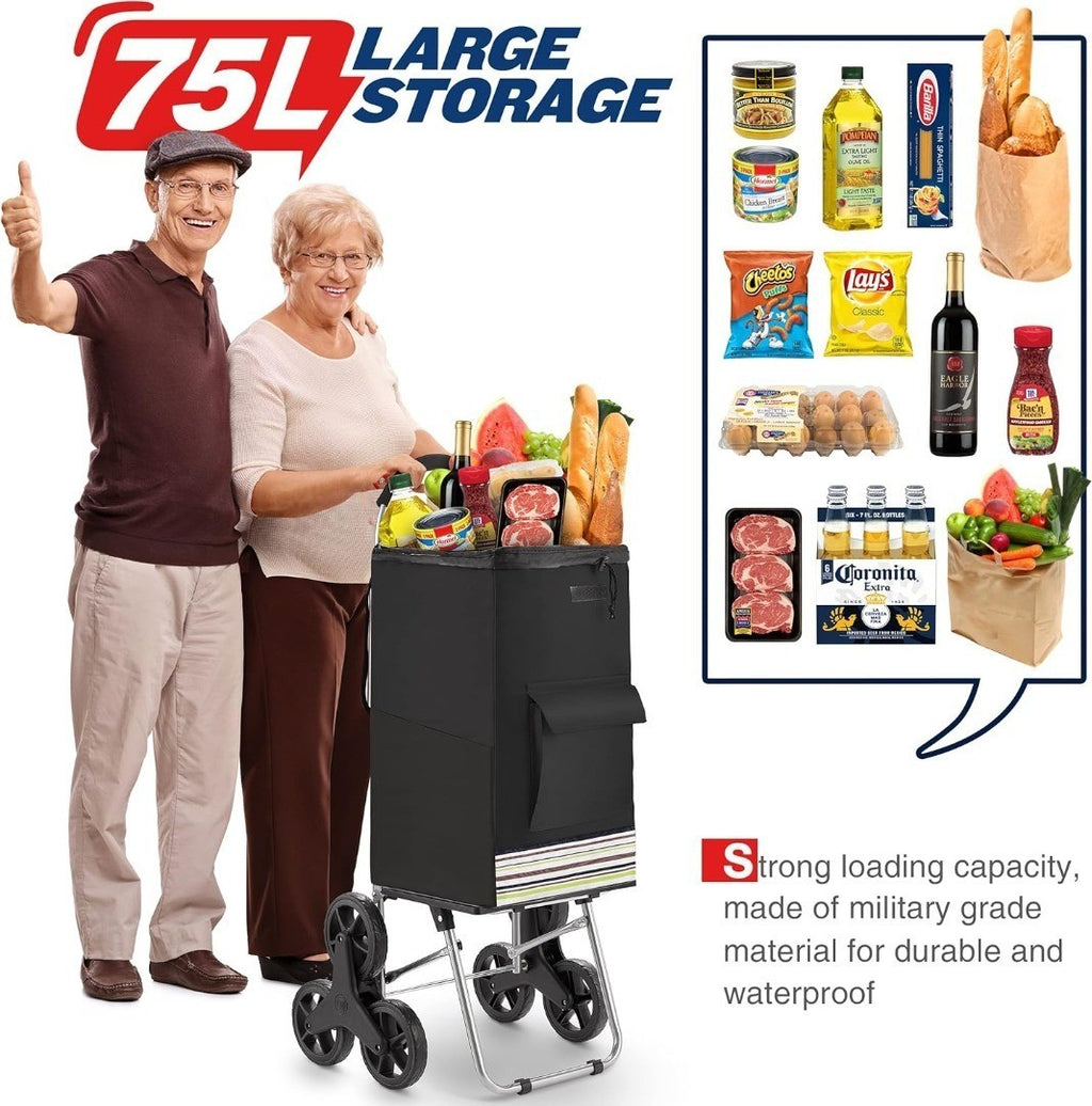 Folding Shopping Trolley Step Climbing 75L Black